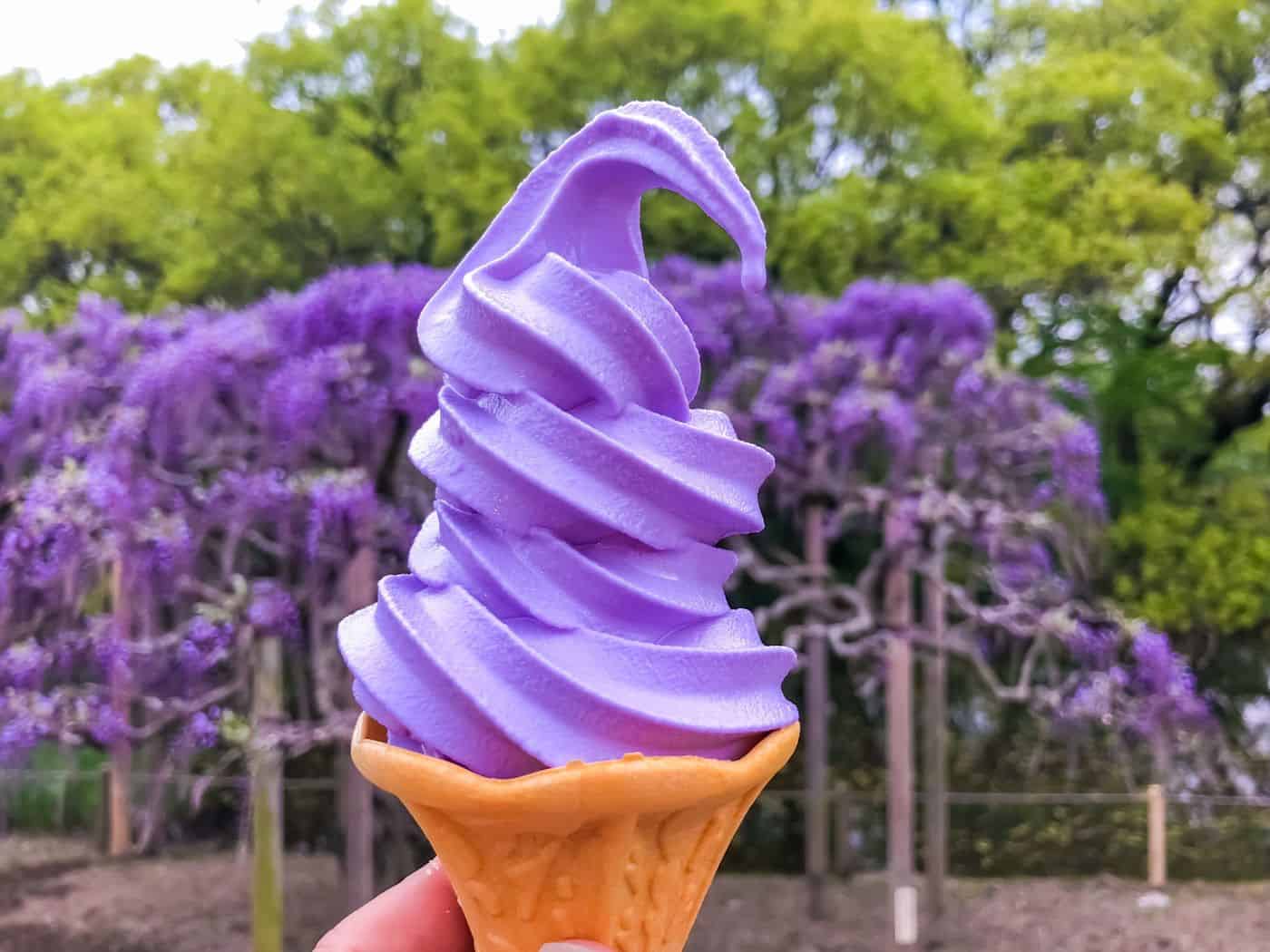อีกสิ่งน่าลองของที่นี่ก็คือไอศกรีมวิสทีเรียที่มีสีสันของดอกวิสทีเรียอยู่เต็มเปี่ยม