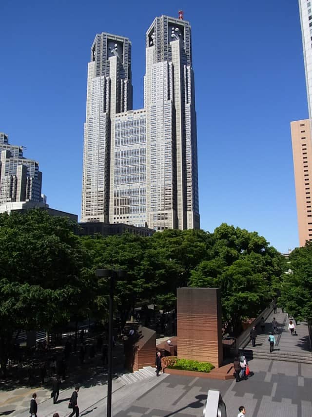 พูดถึงตึกระฟ้าในย่านชินจูกุ จะไม่พูดถึงตึกนี้ก็ไม่ได้ Tokyo Metropolitan Government Building เป็นตึกที่ออกแบบมาให้ดูยิ่งใหญ่ทรงพลังสมหน้าที่ของมัน ซึ่งเป็นอาคารศูนย์ราชการการปกครองในโตเกียว ช่วงลำตัวตึกสูงและหนา ช่วงบนแตกหน่อแยกออกมาอย่างสมมาตร ราวกับการเชิดคอ เชิดหน้าชูตาอย่างมีศักดิ์ศรี