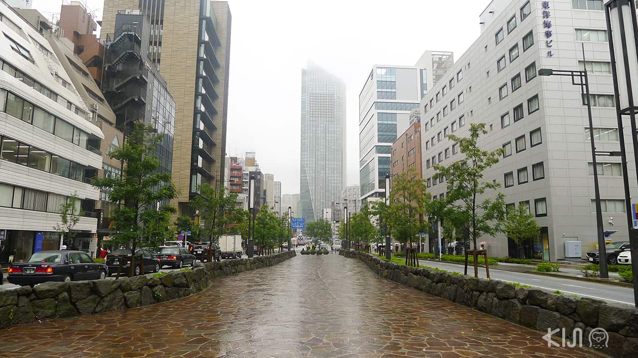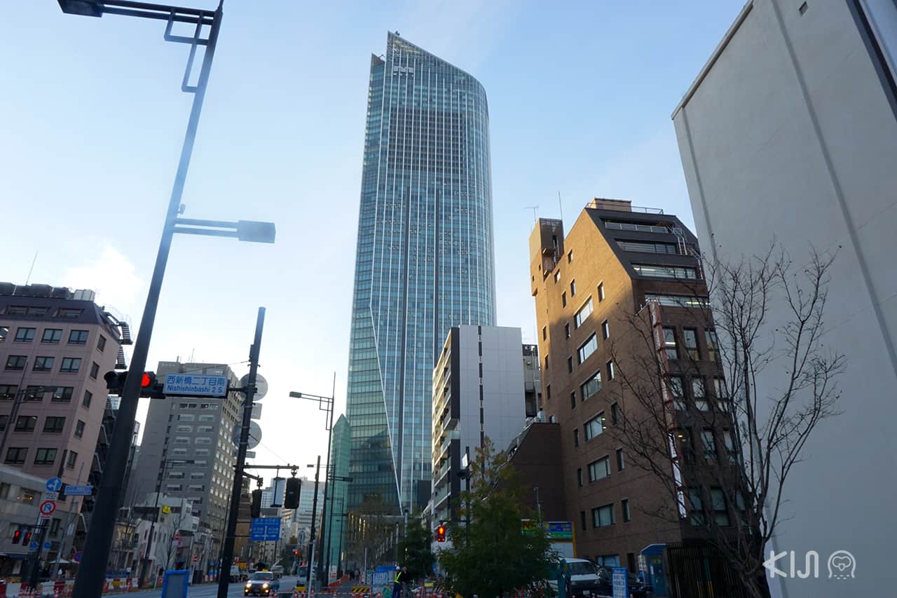 ตัวตึกมีดีไซน์ทันสมัยเรียบหรูและดูแข็งแรง ด้วยความสูงระดับนี้สามารถเชยชมมองเห็นวิวโตเกียวได้จากด้านบนของตึก แต่จุดที่แนะนำเป็นพิเศษคือถนนใหญ่หน้าตึกที่เป็นเส้นตรงยาวนับกิโลเมตรเชื่อมไปถึงย่านชิมบาชิ (Shimbashi) ด้วยสภาพกายภาพถนนและทางเท้าที่กว้างขวางใหญ่โต จึงแทบไม่มีสิ่งกีดขวางอะไรมาบดบังทัศนวิสัยน์เวลามองตึกนี้เลย