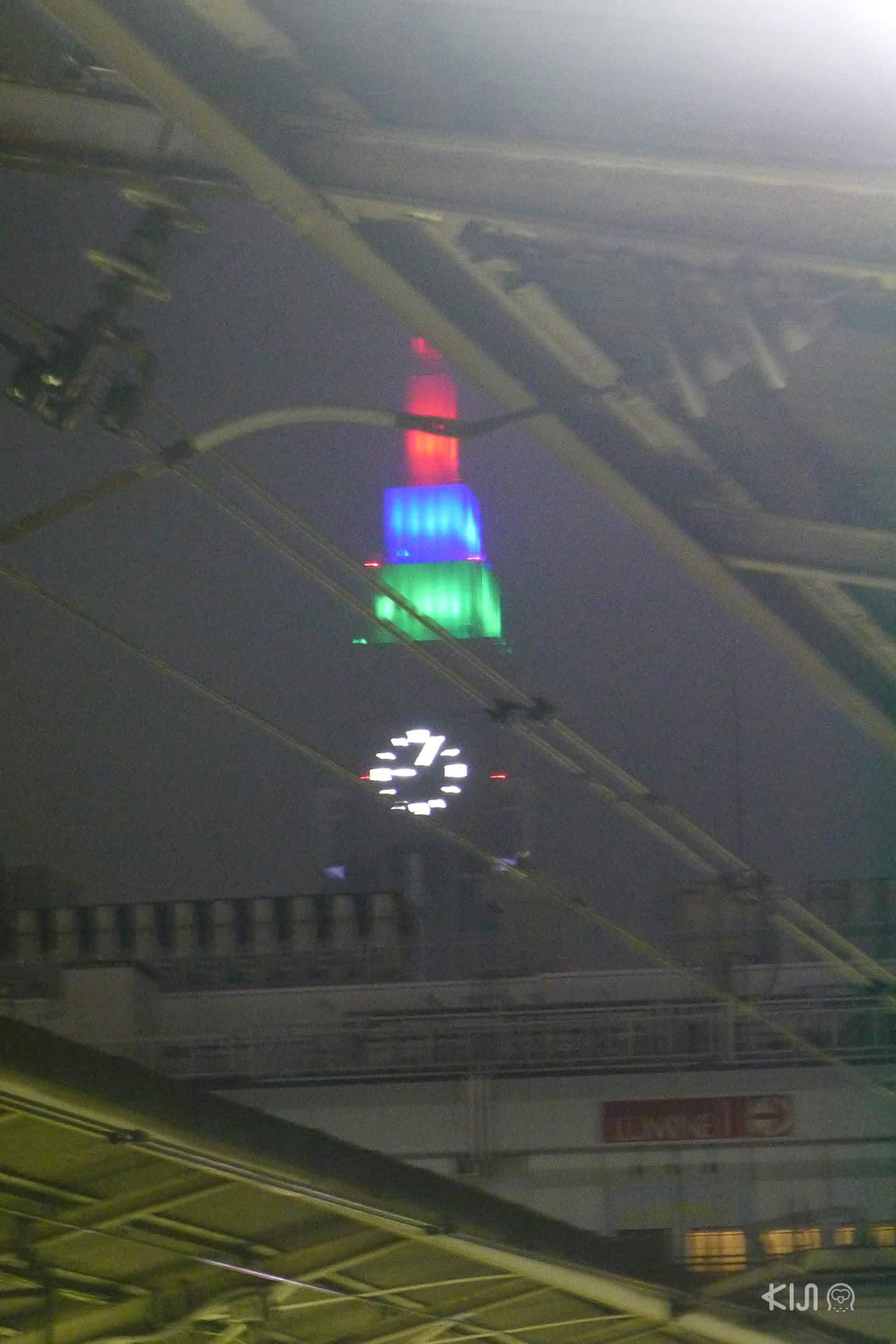 ไม่ได้สวยแค่กลางวัน แต่ยามราตรี ยอดของตึกรวมถึงนาฬิกายักษ์ จะเปิดไฟตกแต่งอย่างมีสีสันสะดุดตา ตึก NTT Docomo ยังเป็นส่วนประกอบของฉากที่พบเจอได้ทั่วไปตามหนังหรือสื่อต่างๆ