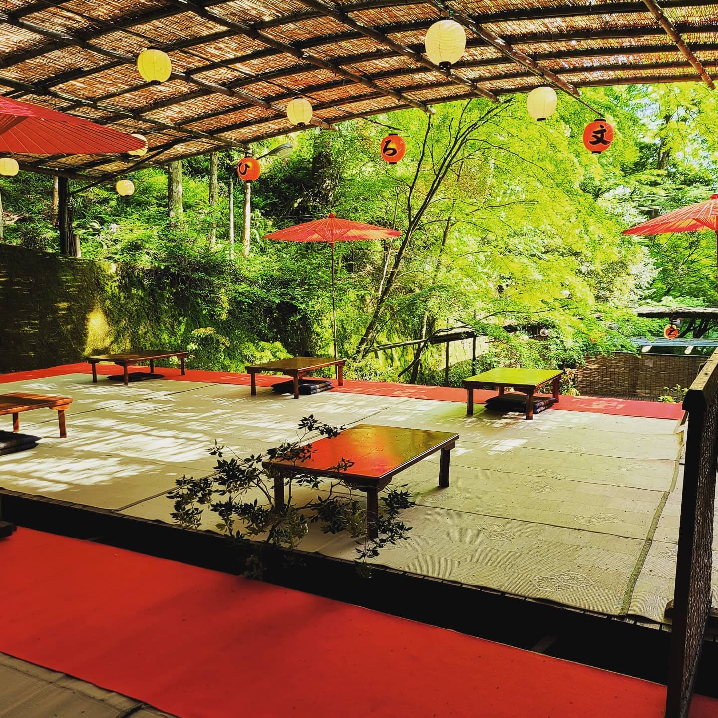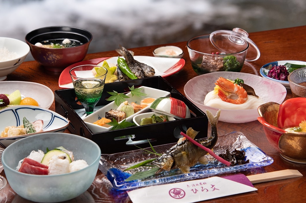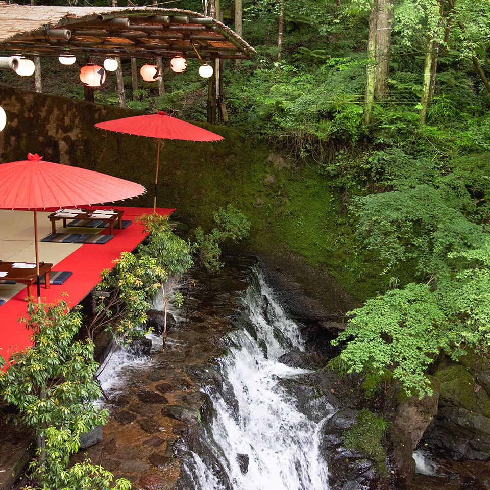 ถ้าพูดถึงเรียวกังแน่นอนว่าต้องนึกถึงความหรูหราสไตล์ญี่ปุ่น ที่นี่จึงมีอาหารแบบไคเซกิ (Kaiseki) หรือการเสิร์ฟอาหารฟูลคอร์สสไตล์ญี่ปุ่น นั่นคือ คาวาโดโกะ ไคเซกิ (Kawadoko Kaiseki) ราคาเริ่มต้น 10,890 เยน (ต้องจองล่วงหน้า) แต่ก็ไม่ต้องเป็นกังวลไปหากเราอยากประหยัดงบที่นี่ก็มี นากาชิโซเมน (Nagashi somen) ราคา 2,000 เยน ซึ่งก็คือการรับประทานโซเมนที่ไหลมาตามรางไม้ไผ่ที่มีขายเฉพาะแค่หน้าร้อนเท่านั้น เพียงเท่านี้เราก็สามารถเพลิดเพลินไปกับทิวทัศน์ของลำธารใสและเติมความสดชื่นในหน้าร้อนนี้ได้แล้ว