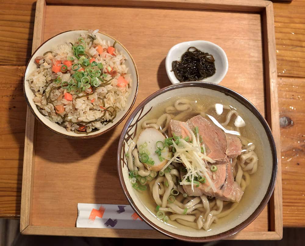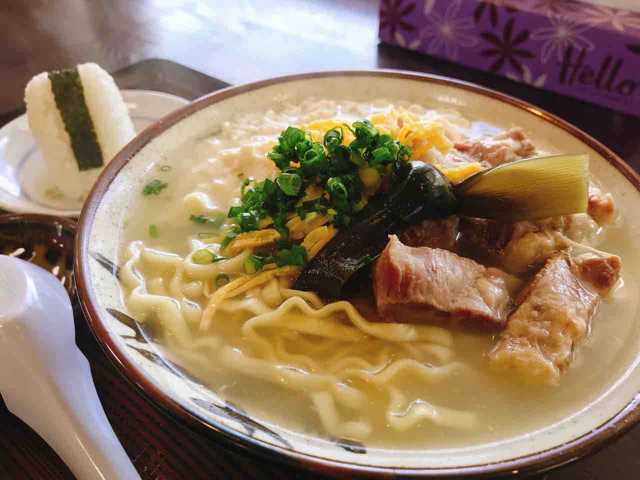 เมนูที่ต้องหยิบมาเอ่ยถึงเป็นอย่างแรกก็ต้องโซลฟู้ดแห่งโอกินาว่าอย่าง โซกิโซบะ หรือคนญี่ปุ่นที่ไม่ใช่คนโอกินาว่าจะเรียกว่า โอกินาว่าโซบะ ซึ่งดูยังไงก็ไม่เห็นเหมือนกับเส้นโซบะที่เราคุ้นเคย เพราะจริงๆ มันคือราเมนซี่โครงหมูตุ๋นที่ใช้เส้นแบบราเมนหรืออุด้ง ไม่ใช่เส้นโซบะ เพียงแต่ใช้ชื่อเรียกว่าโซบะ (ไม่งงนะ)