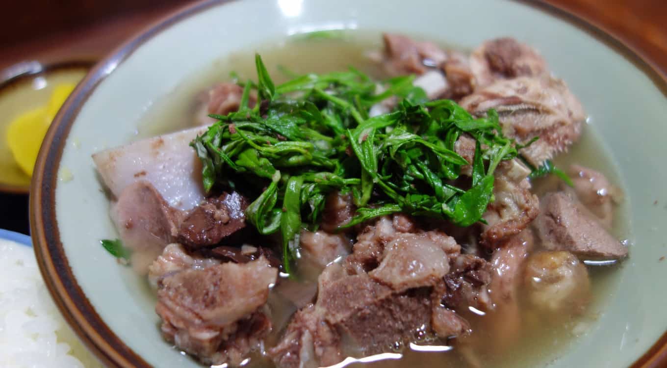 ยากิจิรุ ราคา 1,500 เยน โดดเด่นด้วยน้ำข้นสีขาวกับเนื้อแพะที่ย่างด้วยไฟแรงแล้วนำไปเคี่ยวนานหลายชั่วโมง จนเกิดเป็นน้ำแกงร้อนๆ ที่มีรสออกเค็มกำลังดี ซดหมดจนหยุดสุดท้าย