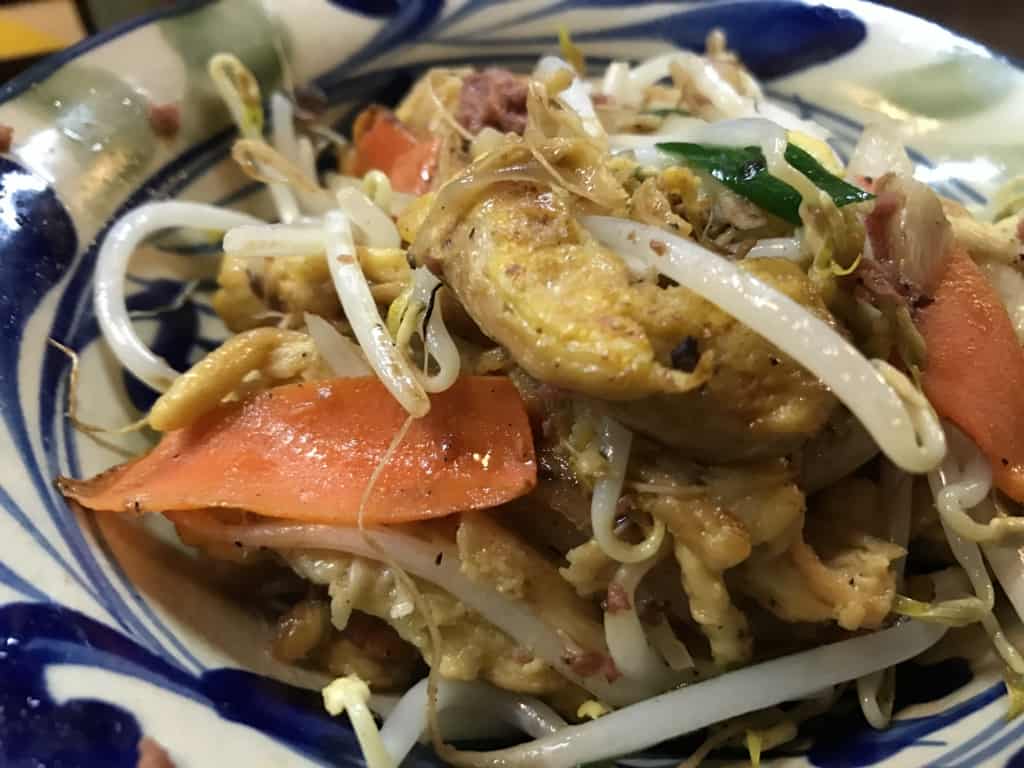 โซเมนจัมปุรุ (Somen Champuru) ราคา 550 เยน หนึ่งในเมนูสุดแปลกน่าลอง เพราะนี่คือจัมปุรุที่ใส่เส้นโซเมนผัดคลุกเคล้ากับผักต่างๆ ให้อารมณ์คล้ายๆ ผัดหมี่ทรงเครื่องแต่เป็นสไตล์โอกินาว่า
