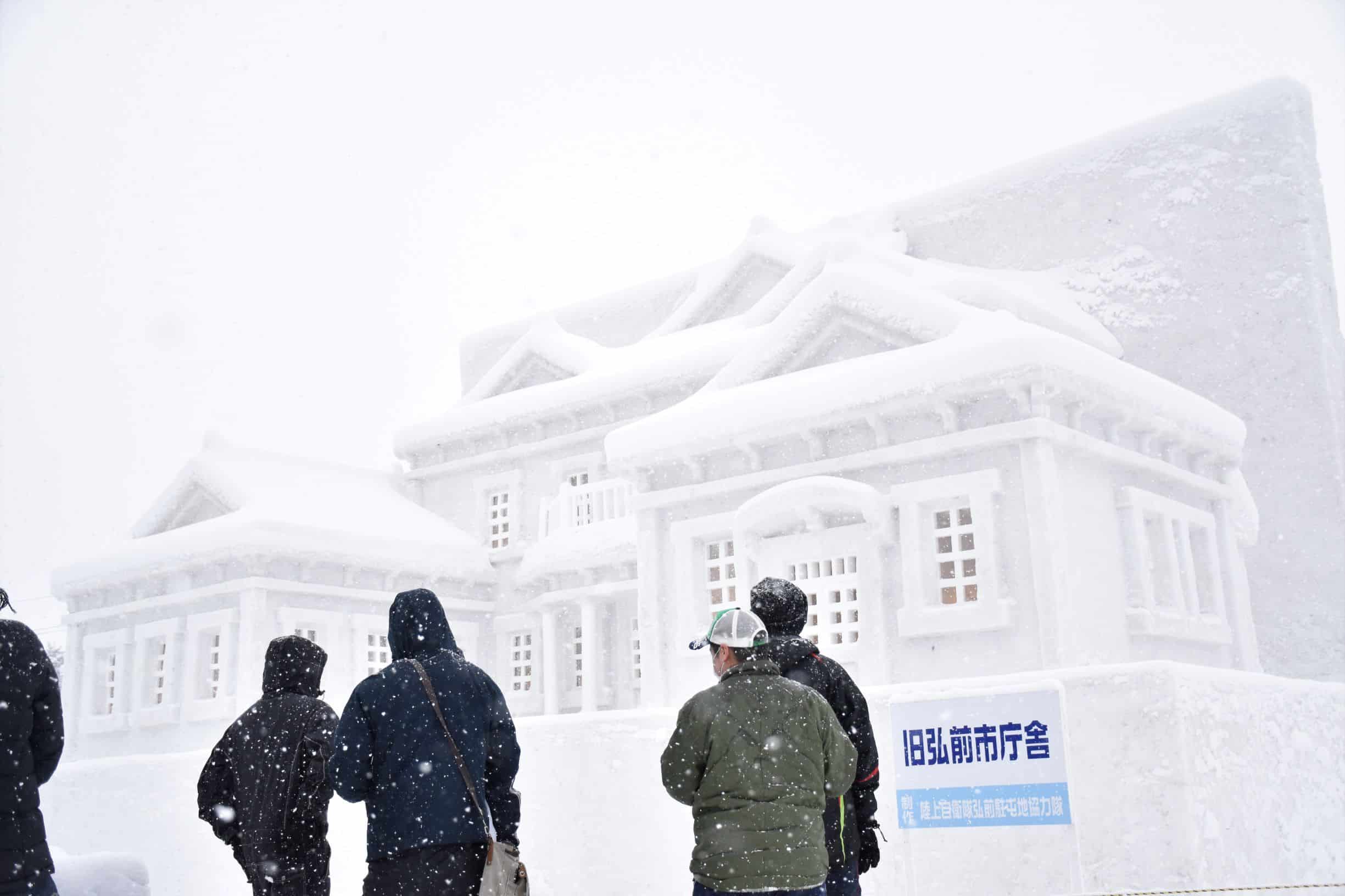 ถ้าไปในช่วง 8-11 ก.พ. 63 จะมีงานเทศกาลโคมไฟหิมะปราสาทฮิโรซากิ (Hirosaki Castle Snow Lantern Festival) ซึ่งเป็น 1 ในเทศกาล ฤดูหนาว ที่ใหญ่ที่สุดในภูมิภาค โทโฮคุ โดยจะมีการประดับโคมไฟหิมะและแกะสลักก้อนหิมะเป็นรูปทรงต่างๆ ที่ล้วนแต่เป็นงานฝีมือจากชาวเมืองฮิโรซากิทั้งสิ้น ซึ่งนอกจากรูปสลักน้ำแข็งที่น่าทึ่งแล้ว สิ่งที่น่าตื่นตาตื่นใจที่สุดก็คือการฉาย Projection Mapping บนงานศิลปะขนาดใหญ่สีขาวโพลน เกิดเป็นแสงสีอันแสนประทับใจในยามค่ำคืน