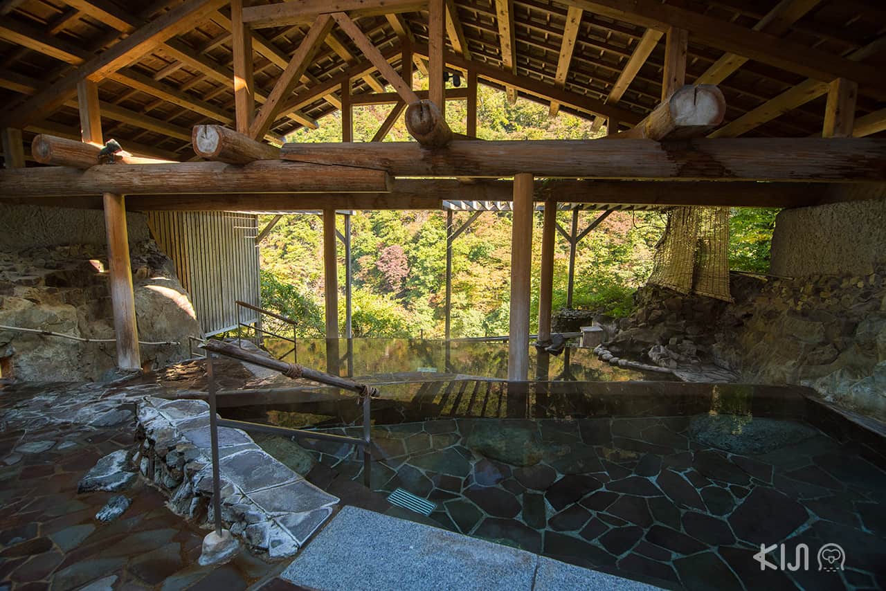 ที่โรงแรมโอคาวะโซ มีออนเซ็นกลางแจ้งที่มาพร้อมวิวสวยๆ หลังจากที่ล้างตัวเสร็จเรียบร้อยเตรียมตัวเดินไปยังออนเซ็น ทันทีที่ถึงออนเซ็น (แบบโป๊ๆ) ผมอยากจะบอกเลยครับว่า ออนเซ็นที่นี่วิวสวยมากจริงๆ ระหว่างนอนแช่อย่างสบายใจ คุณสามารถชมวิวได้กว้างถึง 180 องศา จะมีอะไรผ่อนคลายไปกว่านี้ไม่มีอีกแล้ว น้ำอุ่นๆ แสงแดดอุ่นๆ ผสมกับสายลมเย็นๆ และวิวใบไม้ที่กำลังเปลี่ยนสีละลานตา ขอพักต่ออีกสักสามคืนได้ไหมค๊าบบบ