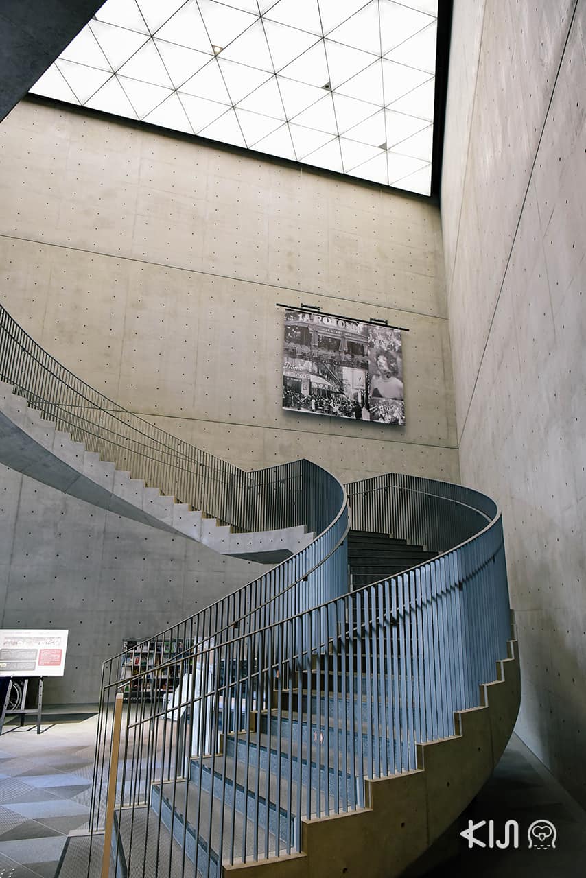 ไม่ไกลจากสวนเซนชู เดินเลียบสระบัวมาเรื่อยๆ จะพบกับพิพิธภัณฑ์ศิลปะปูนเปลือย ผ่านประตูเข้ามาเชื่อว่าทุกคนจะต้องสะดุดตากับบันไดโค้งจนถึงเพดานสูง ที่เปิดรับแสงเข้าจากหลังคาสามเหลี่ยมด้านบนสุดซึ่งออกแบบโดยสถาปนิกญี่ปุ่นชื่อดังอันโดะ ทาดาโอะ (Tadao Ando) พิพิธภัณฑ์แห่งนี้นอกจากจะเป็นพื้นที่จัดแสดงงานศิลปะแล้ว ยังมีอีกจุดมุ่งหมายสำคัญในการเป็นสะพานเชื่อมศิลปะกับเมืองและคนท้องถิ่นอาคิตะให้เข้าถึงศิลปะได้เหมือนกับเป็นส่วนหนึ่งในวัฒนธรรม