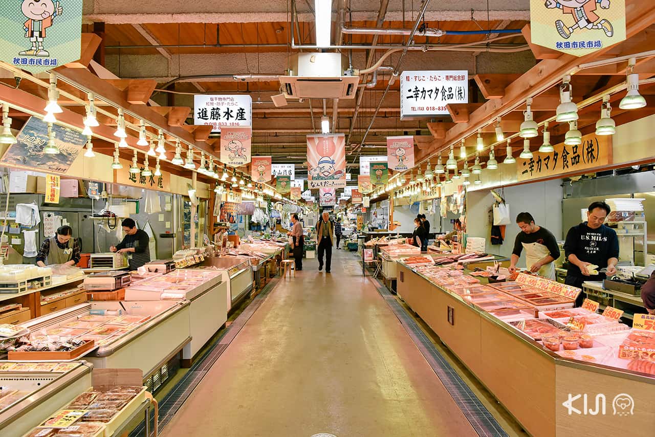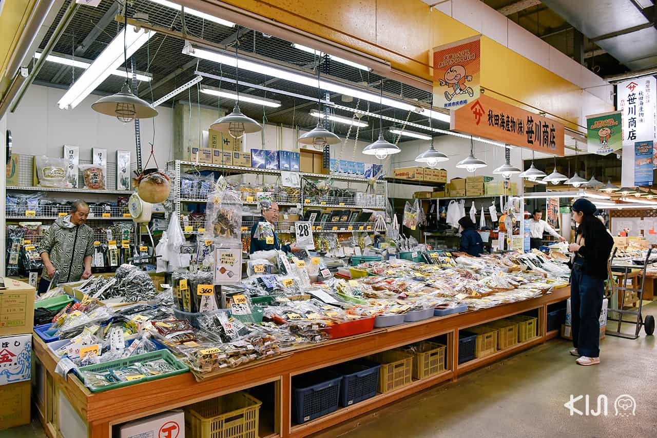 ตลาดที่รวบรวมผลิตภัณฑ์ขึ้นชื่อของอาคิตะในราคาเป็นมิตร ทั้งอาหารทะเลสดใหม่ ผักภูเขา เห็ด ผลไม้ตามฤดูกาล รวมถึงยังสามารถหาวัตถุดิบ อาหารแห้ง หรือเครื่องเทศสำหรับใช้ในการปรุงอาหาร ส่วนตัวเราก็อดใจไม่ได้เหมาสาหร่ายและของแห้งกลับไปฝากคนที่บ้าน แนะนำเลยเพราะราคาดีมากจริงๆ เพิ่มเติมอีกนิดว่าถ้าสนใจจะซื้อจริงๆ เราสามารถขอชิมก่อนได้ด้วยนะ