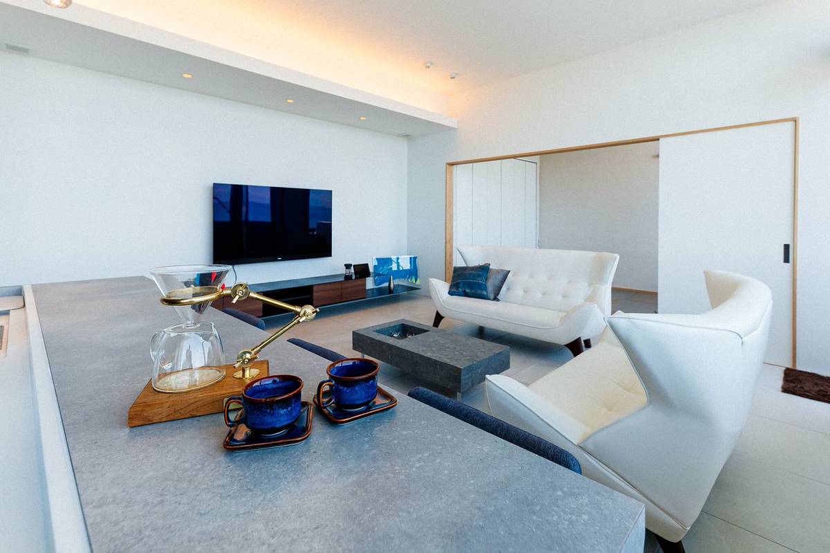ภายในบ้านพักตกแต่งอย่างสวยงามสบายตา พร้อมหน้าต่างบานใหญ่รับแสงธรรมชาติ สามารถเห็นวิวด้านนอกได้ตลอดเวลา ห้องรับแขกที่กว้างขวางมีจอ Smart TV ขนาดใหญ่เชื่อมต่ออินเทอร์เน็ตความเร็วสูง พร้อมฟังก์ชันอัจฉริยะที่ทำได้ทั้งดูหนังผ่าน Netflix เล่นเกม หรือเพลิดเพลินไปกับการร้องคาราโอเกะ ซึ่งช่วยเติมเต็มเวลาแสนสนุกของคุณได้อย่างเต็มที่