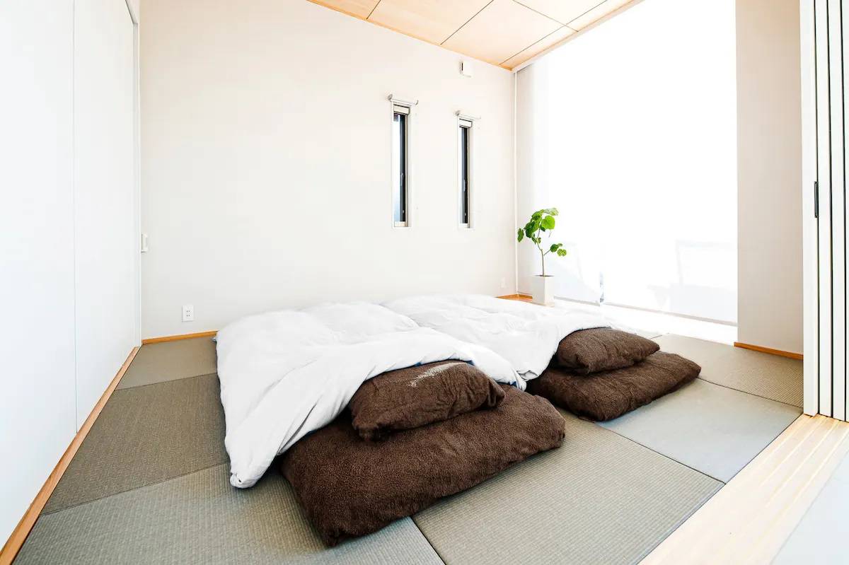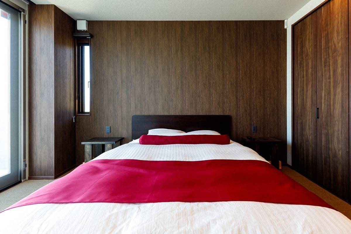 ในส่วนของห้องนอนมีทั้งหมด 2 ห้อง แบ่งเป็นห้องพักแบบตะวันตก มีเตียงเดี่ยวขนาดควีนไซส์ ตกแต่งห้องด้วยโทนสีน้ำตาลจากพื้นผิวไม้ดูนุ่มนวลอบอุ่น และห้องพักแบบญี่ปุ่น โดยจะมีฟุตงหรือเบาะนอนอย่างดี ปูได้สูงสุด 4 ที่