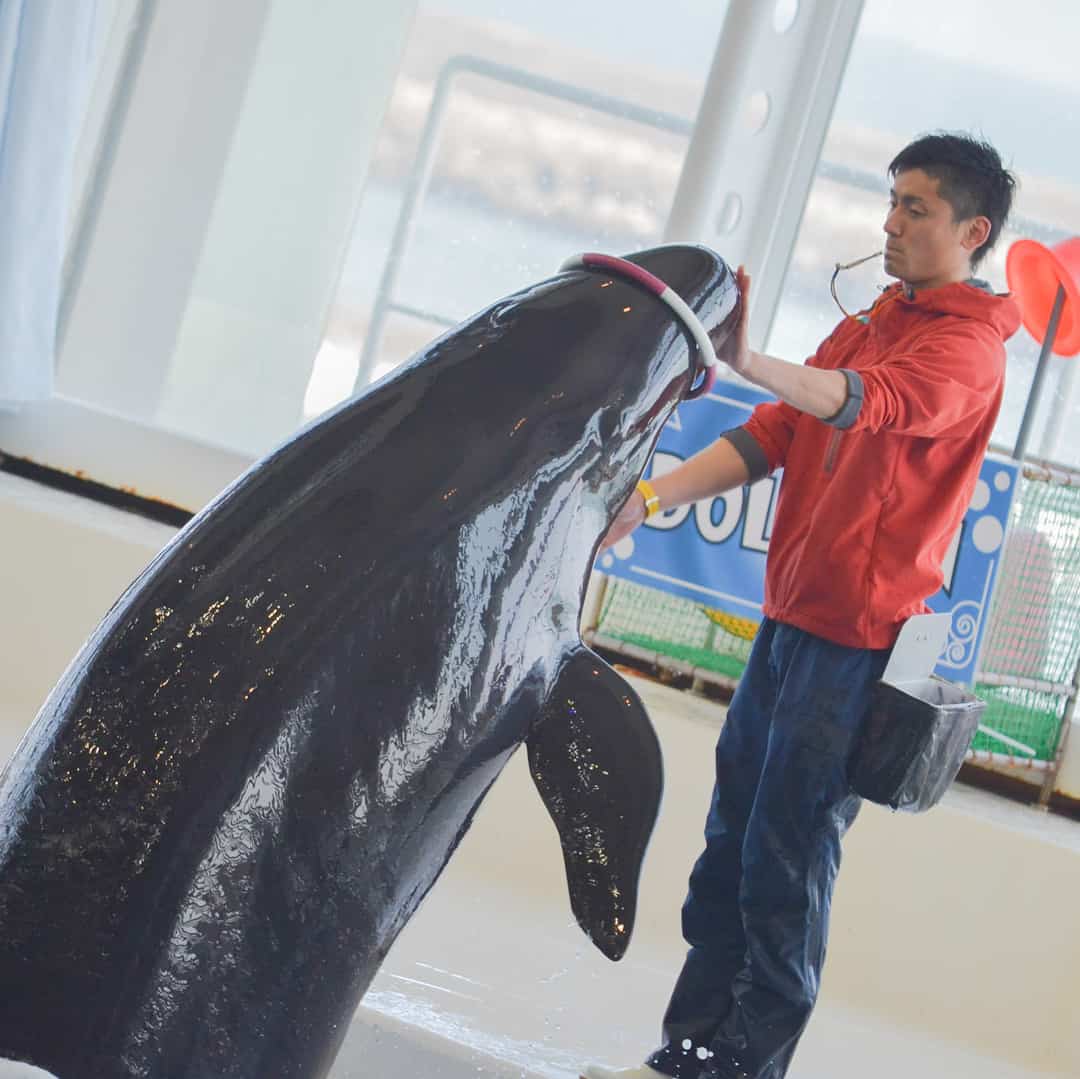 สัตว์ทะเลที่น่ารักและแสนรู้อย่างโลมา สิงโตทะเลแคลิฟอร์เนีย (California Sea Lion) เพนกวินฮัมโบลต์ (Humboldt Penguin) เตรียมการแสดงเพื่อสร้างความประทับใจให้ผู้มาเยือน Aqua World Oarai ทุกคน ซีนที่น่าจับตามองคือช่วงที่โลมาพุ่งทะยานขึ้นมาจากน้ำอย่างสง่างาม
