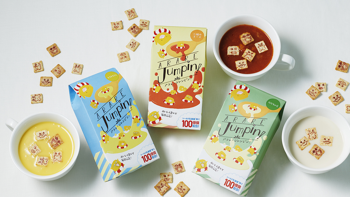 ARARE Jumpin คืออาราเระข้าวกล้องสไตล์ใหม่ ที่จะมาเติมเต็มความอร่อยให้มื้อเช้าของคุณ ด้วยความใส่ใจในรสชาติที่ผลิตขึ้นมาให้เหมาะกับการรับประทานพร้อมกับซุปร้อนๆ นอกจากเพิ่มรสชาติแล้วยังได้คุณประโยชน์มากมากจากข้าวไม่ขัดสี อีกทั้งการออกแบบที่จะทำให้ลืมมื้อเช้าอันแสนน่าเบื่อไปเลย