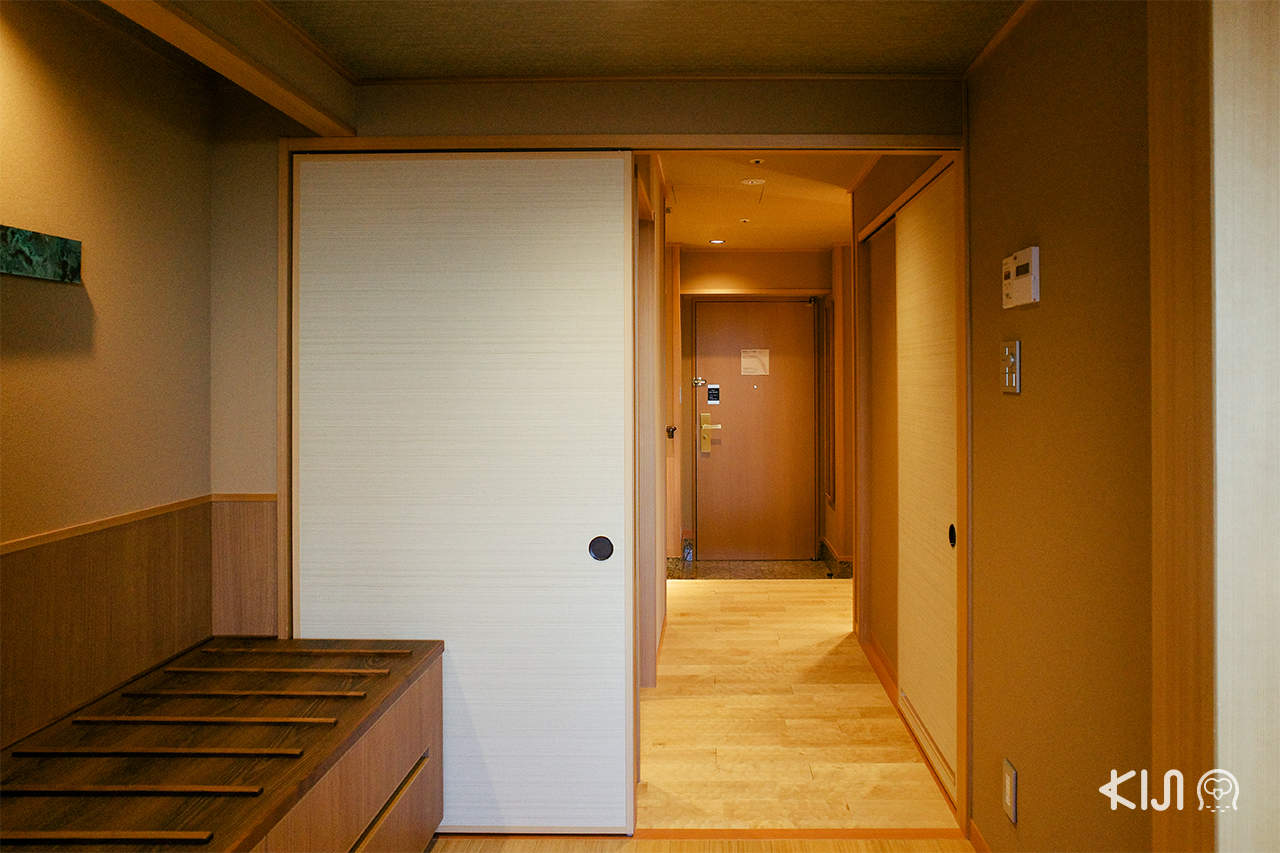 ห้องพักที่นี่มีทั้งหมด 7 สไตล์ เราพักห้องห้องสไตล์ Japanese Western ภายในห้องมีสิ่งอำนวยความสะดวกครบถ้วน ทั้งเตียงนอนและที่นอนบนเสื่อทาทามิ (สามารถแจ้งพนักงานให้ปูที่นอนได้หากต้องการ) ภายในห้องสามารถกั้นห้องได้ถึง 3 ห้อง คือห้องโถงทางเข้า ห้องรับแขก และห้องนอน มีห้องน้ำขนาดใหญ่ 1 ห้อง และขนาดเล็ก 1 ห้อง มีมุมเครื่องดื่มและเครื่องชงกาแฟ ในตู้เสื้อผ้ายังมีชุดยูกาตะให้เปลี่ยนใส่ลำลองขณะอยู่ในโรงแรมอีกด้วย เมื่อเปลี่ยนชุดเรียบร้อยก็ถึงเวลาสำคัญ เราจะไปแช่ออนเซ็นกัน!