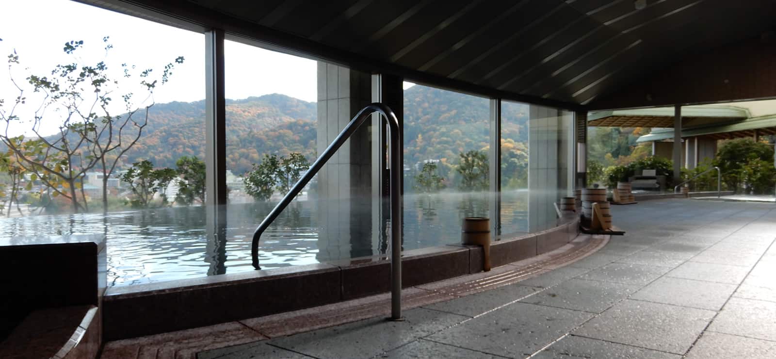 ทางเดินทอดยาวพาเราเข้าไปถึงโซนออนเซ็นของโรงแรม มีผู้มาใช้บริการหนาตาอาจเพราะว่าเป็นช่วงค่ำที่อากาศเย็นลง หลายคนต้องการความอบอุ่นรวมถึงเราด้วย ออนเซ็นของที่นี่มี 2 สี คือสีทองและสีเงิน สีทอง เรียกว่า Kinsen (金泉) น้ำที่เกิดการเปลี่ยนแปลงทางเคมีเมื่อสัมผัสกับอากาศจนกลายเป็นสีทองแดง มีปริมาณเกลือสูงถึง 2 เท่าของน้ำทะเล มีคุณสมบัติเคลือบผิวทำให้ชุ่มชื้น ส่วนสีเงิน เรียกว่า Ginsen (銀泉) เป็นน้ำใสที่ช่วยเพิ่มระดับภูมิคุ้มกัน บรรเทาอาการปวดกล้ามเนื้อคลายความเหนื่อยล้าอีกหนึ่งของการบำบัดด้วยธรรมชาติ