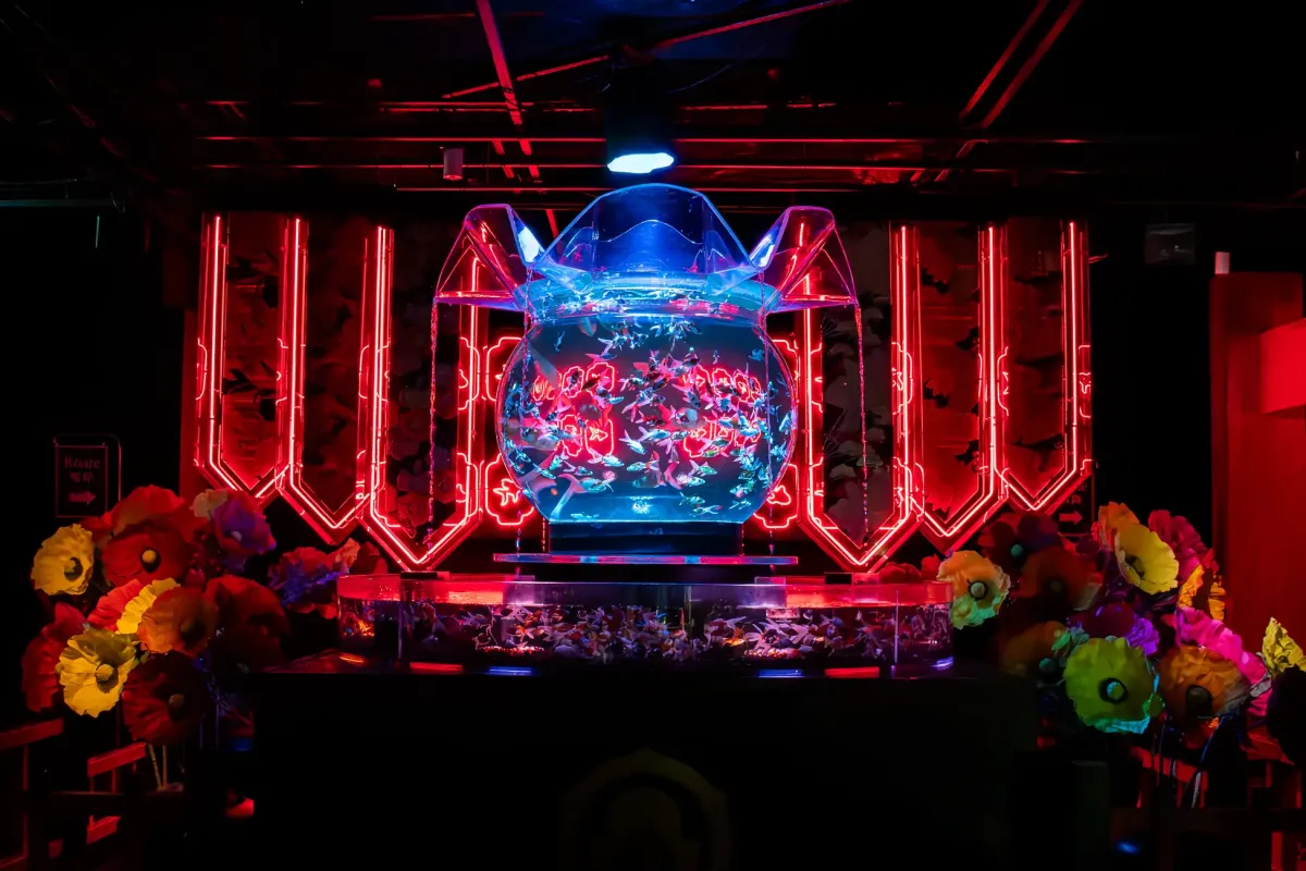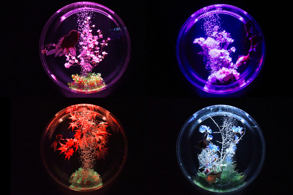 นอกจากโซนจัดแสดงหลักแล้ว ตอนนี้ที่นี่ยังมีนิทรรศการพิเศษ “Flower Aquarium Gala: The Colors of Goldfish and Flowers” งานที่นำความงดงามของปลาทองและดอกไม้มาผสานกัน ราวกับงานเลี้ยงกาล่าสีสันที่ชวนให้เราใช้ทั้งสายตาและความรู้สึกดื่มด่ำไปกับบรรยากาศโดยรอบ