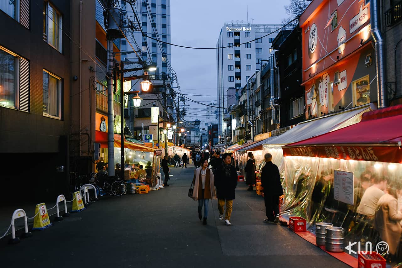 มีคนบอกว่าถ้าอยากสัมผัสไนท์ไลฟ์ของย่านอาซากุสะ ให้มาที่ถนนฮ็อปปี้ ถนนสายนี้ตั้งอยู่ทางทิศตะวันตกของวัดเซ็นโซจิ ตลอดสองข้างทางเป็นร้านอิซากายะ (ร้านกินดื่มสไตล์ญี่ปุ่น) มีจุดสังเกตเข้าใจง่ายๆ คือเต็นท์พลาสติกที่ใช้คลุมเพื่อกันอากาศหนาวในตอนกลางคืนเป็นเอกลักษณ์ที่น่าจดจำของถนนฮ็อปปี้เลย