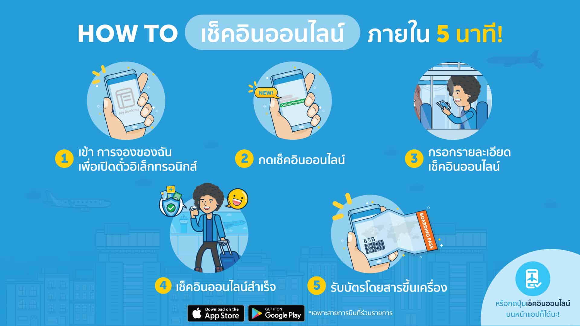 *สายการบินที่ร่วมบริการ: การบินไทย, ไทยสมายล์, ไทยไลอ้อนแอร์, การูด้าแอร์ไลน์
