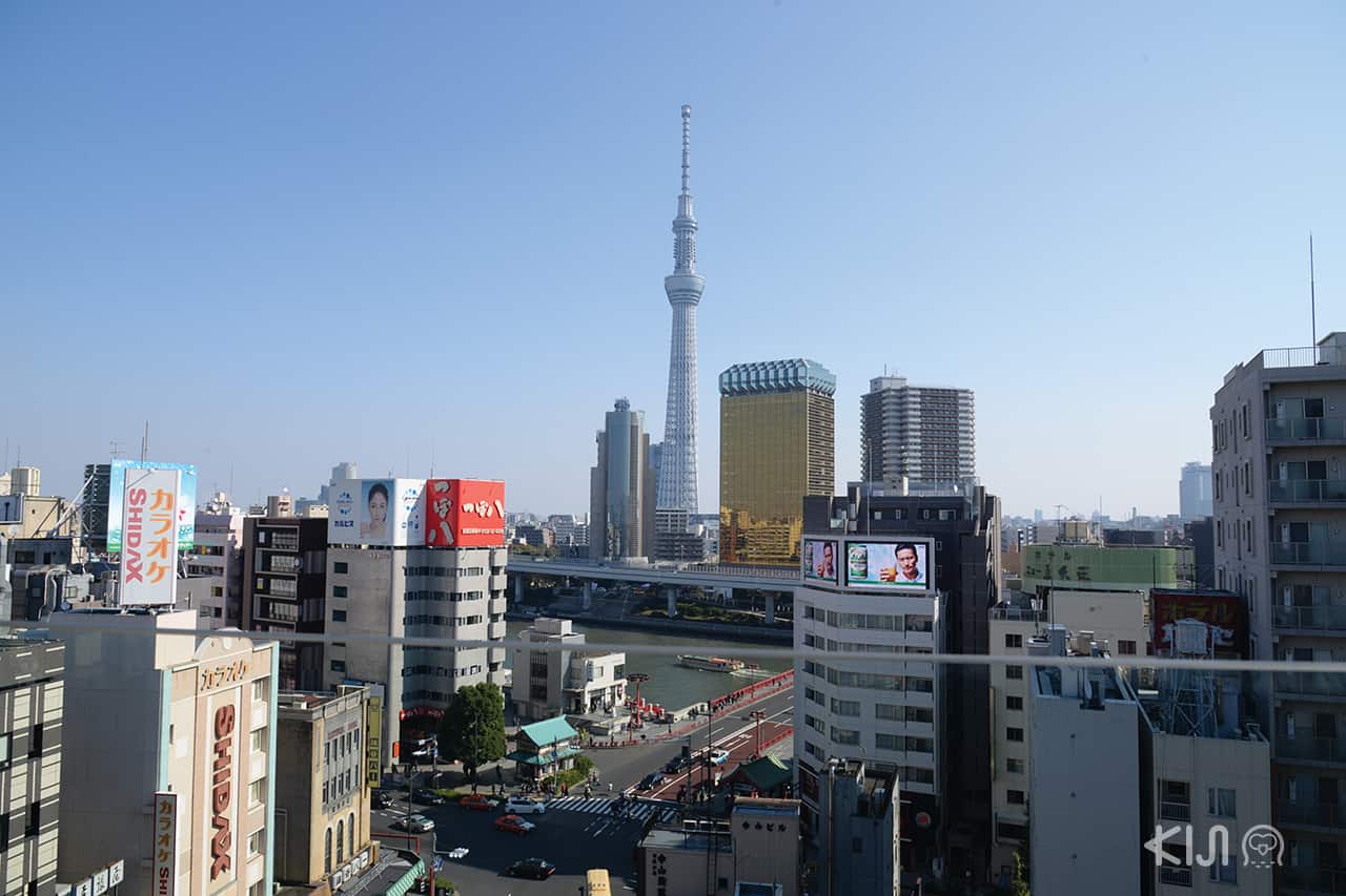 จากสถานีโตเกียว (Tokyo Station) ➝ นั่งรถไฟ JR Yamanote Line (For Ueno/ Ikebukuro) ไปลงที่สถานีคันดะ (Kanda Station) ใช้เวลา 2 นาที (1 ป้าย) จากนั้นให้เปลี่ยนไปนั่ง Tokyo Metro Ginza Line (For Asakusa) ไปลงที่สถานีอาซากุสะ (Asakusa Station) ใช้เวลา 10 นาที (6 ป้าย)