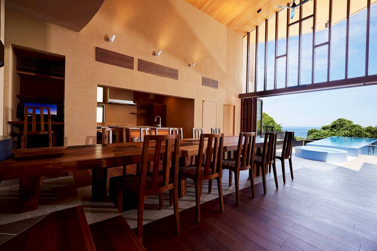 นอกจากนี้ก็จะมีโทรทัศน์จอขนาดใหญ่พิเศษ 135 นิ้วให้เราได้แชร์ประสบการณ์การดูหนังรวมกัน และชั้นดาดฟ้าด้านบนสุดจะมีพื้นที่ให้เราสามารถไปนั่งชมวิวแบบภาพมุมกว้างของธรรมชาติและอ่าวซางามิได้อีกด้วย ไม่ว่าจะมาเที่ยวกับกลุ่มคนสนิท ครอบครัว หรือจะมา Workcation เปลี่ยนบรรยากาศการทำงานกับเพื่อนร่วมงานก็ไม่มีปัญหา