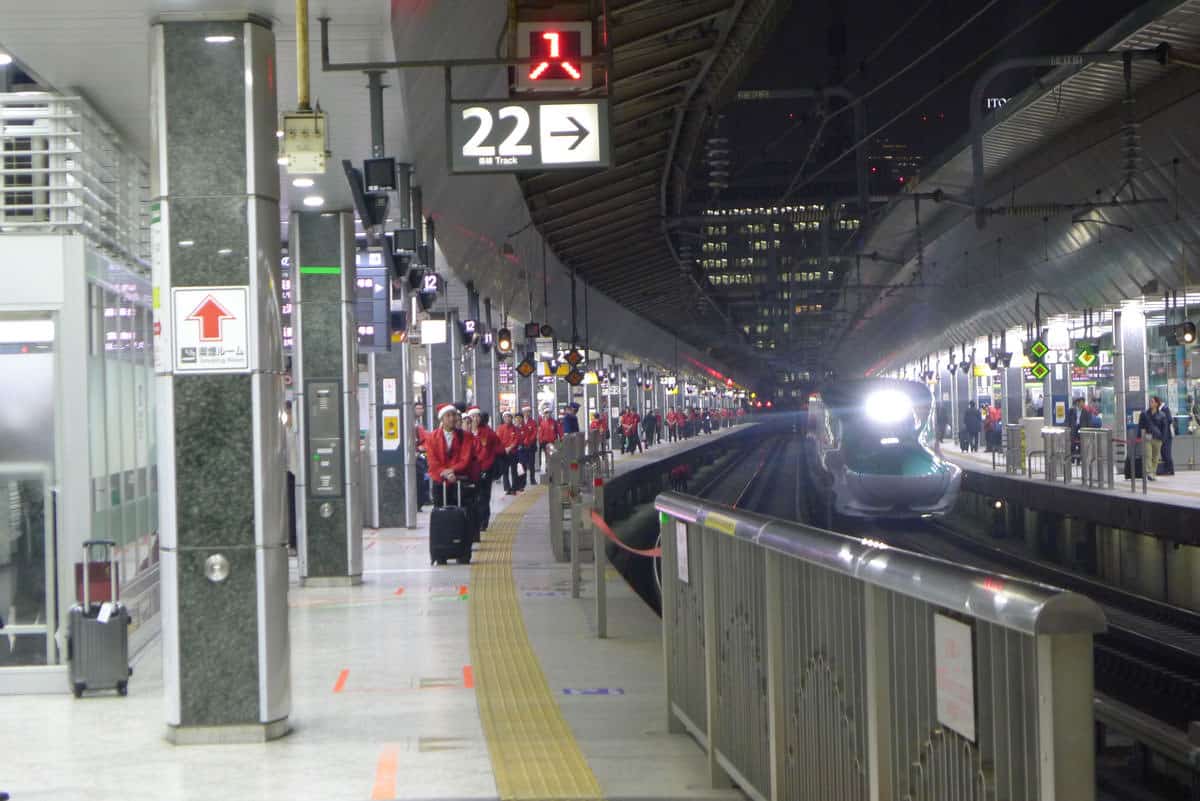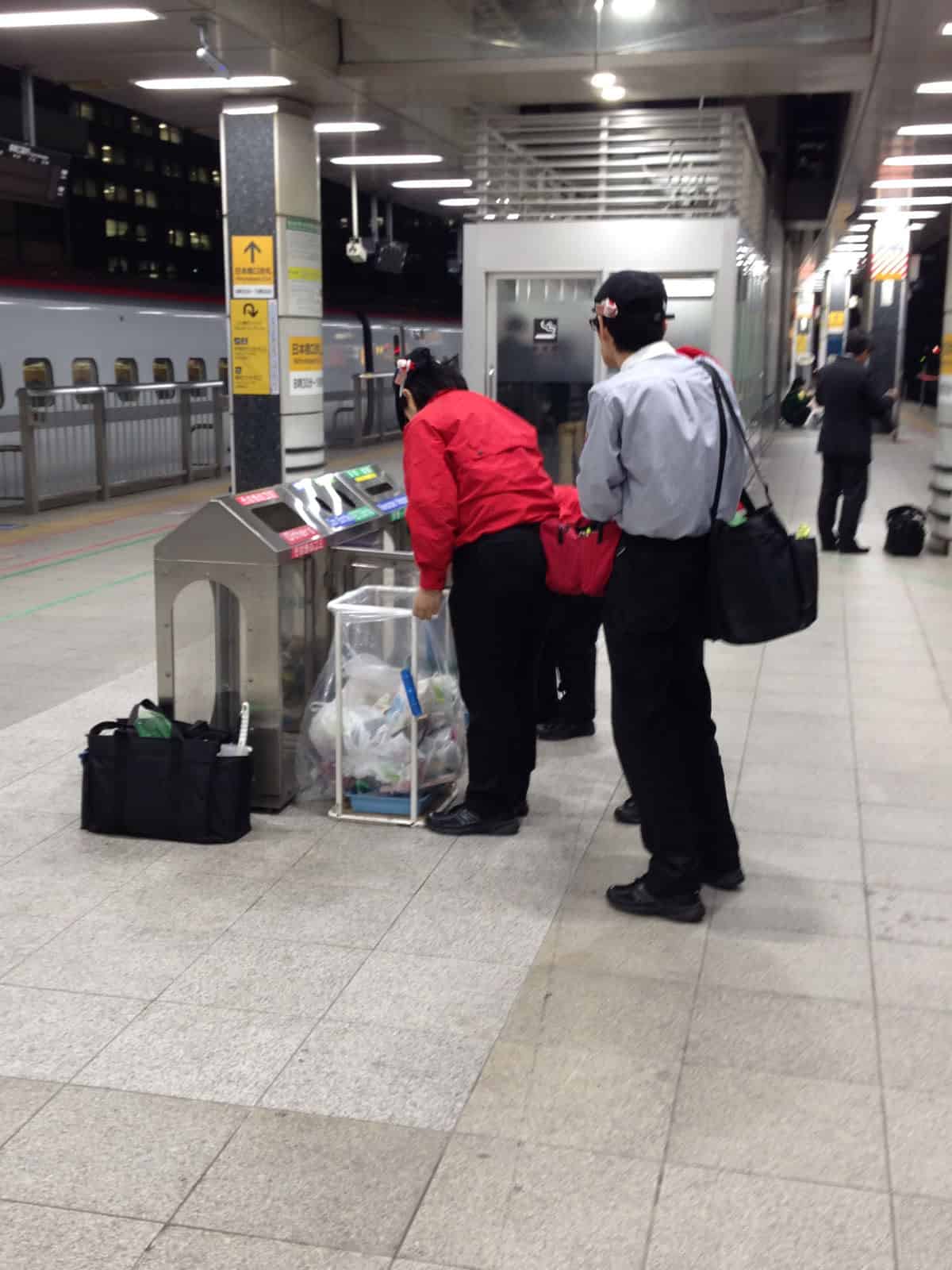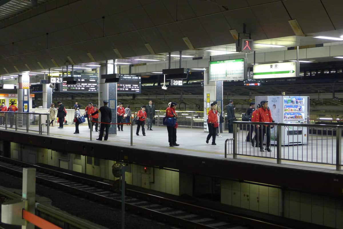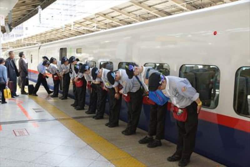หนึ่งในภาพที่สวยงาม (และชวนถ่ายภาพสำหรับ นทท.) คือการต่อคิวกันอย่างเป็นระเบียบ เมื่อรถไฟกำลังแล่นผ่านเข้าจอดชานชาลา ทุกคนจะโค้งคำนับอย่างสวยงาม และเมื่อทำความสะอาดเสร็จ จะยังไม่สลายโต๋แยกย้ายทันที แต่ธรรมเนียมคือจะออกมายืนบริเวณแต่ละทางออกของรถไฟ แล้วค่อยโค้งคำนับปิดท้ายพร้อมกันอีกที ^^ และหลายคนยังช่วยกันเก็บแยกขยะบริเวณชั้นชานลาแม้ไม่ใช่หน้าที่โดยตรงด้วยซ้ำ (แถมยังเก็บเร็วด้วย! )