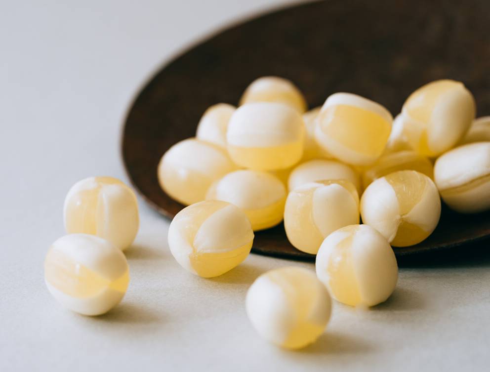 ยังมีอีกความแปลกใหม่นั่นคือ Butter Candy ลูกอมรสเนยที่ใช้เนยจากฟาร์มฮิรุเซ็นเจอร์ซีย์แลนด์ (Hiruzen Jersey Land) ในเมืองมานิวะ (Maniwa) จังหวัดโอคายาม่า แหล่งผลิตเนยอันดับ 1 ของญี่ปุ่น อีกทั้งยังได้เชฟขนมฝีมือดีจาก Iwai Seika ที่เกียวโตมารังสรรค์เมนูลูกอมแสนอร่อยนี้ด้วยความละเมียดละไมอีกด้วย