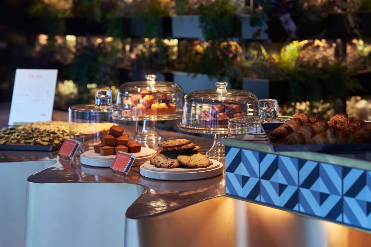 ถัดมาในส่วนของมื้อกลางวันในช่วง 11:30-14:00 น. จะเป็นพาสต้าเส้นสดพร้อมกับบุฟเฟต์ขนมปังอบสดใหม่และจานสลัดเพื่อสุขภาพ เส้นพาสต้าของที่นี่ส่งตรงมาจากเกาะอาวาจิ (Awaji Island) ซึ่งอุดมไปด้วยธรรมชาติ นอกจากนี้ยังสามารถเลือกชนิดของเส้นและซอสเองได้ด้วย