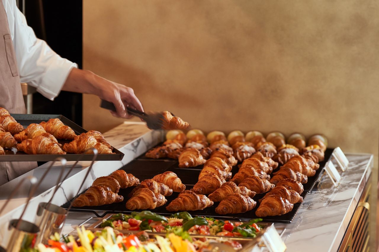 เมนูที่ไม่ควรพลาดสำหรับมื้อเช้าของ CENTER M คือ ครัวซองต์เนยหมักที่อบสดใหม่ทุกวัน ยิ่งสำหรับใครที่เป็น Croissant Lover ยิ่งไม่ควรพลาด ทั้งกลิ่นหอมๆ ของเนยที่สัมผัสกับความร้อน สัมผัสอันบางเบาและความกรอบนอกนุ่มในของเนื้อขนมปัง นอกจากนี้ก็ยังมีสลัดเตรียมเอาไว้ให้สำหรับใครที่ไม่อยากกินของหนักๆ ในมื้อเช้าด้วย