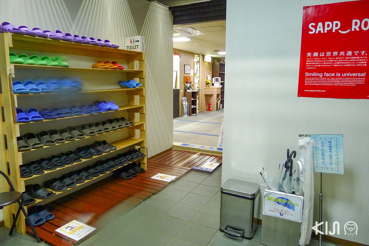 ก่อนเข้าภายในต้องถอดรองเท้า และใส่สลิปเปอร์ของโรงแรม