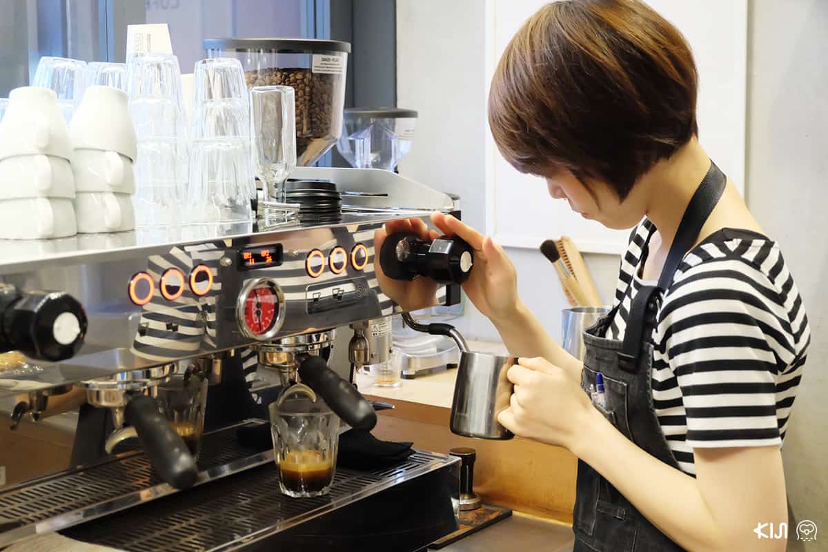 ความพิเศษของสาขาญี่ปุ่นนอกจากความเท่สูงโปร่งอย่างเป็นมิตรของร้านทั้ง exterior และ interior ที่สาขาโตเกียวนี้มี Kiba blend เป็นกาแฟพิเศษเฉพาะสาขานี้ด้วยโมะเอะโกะสตาฟฟ์คนสวยชวนให้ชิม kiba blend เป็น medium roast ที่มีความสมดุลระหว่าง chocolate และ citrus จะเอาไปทำเอสเปรสโซก็ดีหรือ coldbrew ก็อร่อย