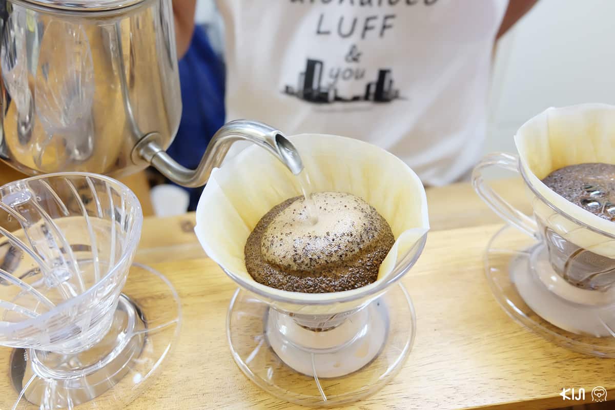 แม้พื้นที่ภายในร้านจะไม่กว้างมากนัก แต่มีลูกค้าทั้งหน้าเก่าหน้าใหม่แวะเวียนมาเยี่ยมตลอดเวลา ไทจุเล่าให้ฟังว่าลูกค้าที่นี่หลากหลายมาก มีตั้งแต่อายุ 7-94 ปี ด้วยความเป็นกันเองของเจ้าของร้านทำให้คนที่มาจิบกาแฟรู้สึกสบายๆ คนที่ไม่เคยกินกาแฟ single origin มาก่อน ก็ถามเขาได้อย่างสบายใจ ระดับความเป็นมิตรของที่นี่สูงมากจริงๆ คนที่เดินผ่านร้านไปมา หรือแม้จะขี่จักรยานอยู่ก็แอบโบกมือทักทายเขาพร้อมรอยยิ้ม นอกจากจะเป็น roaster และ barista เราว่าเขาเป็นคนของประชาชนด้วยนะ