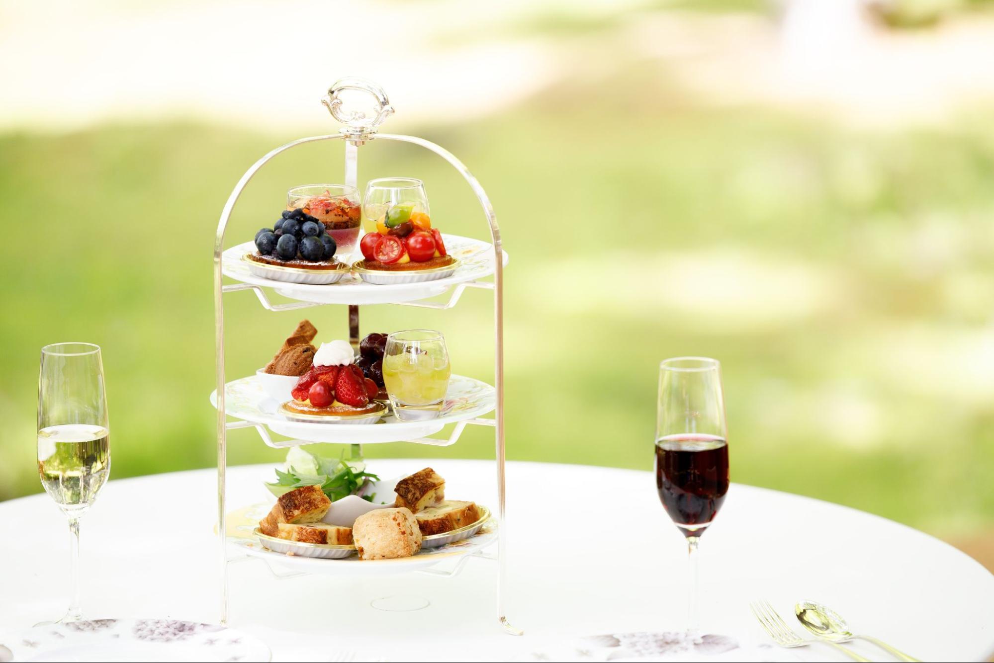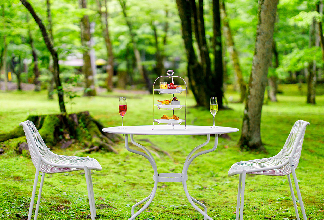 อีกหนึ่งเมนูแนะนำ คือเซ็ตน้ำชายามบ่ายที่เหมาะกับการนั่งจิบน้ำชาไปพลางพร้อมกับชมความงามของธรรมชาติรอบๆ ตัว โดยเซ็ตนี้สามารถรับประทานได้ 2 คน ประกอบไปด้วย Petits Gateaux หรือขนมอบสไตล์ฝรั่งเศส 2 ชนิด เยลลี่ผลไม้ เบเกอรี่ 4 ชนิด พาวนด์เค้ก สลัด และปิดท้ายด้วยเชอร์เบทในแก้วน่ารักๆ ราคาของเซ็ตอยู่ที่ 4,950 เยนต่อคน สามารถสั่งได้ในช่วงเวลา 11:30-17:00 น.
