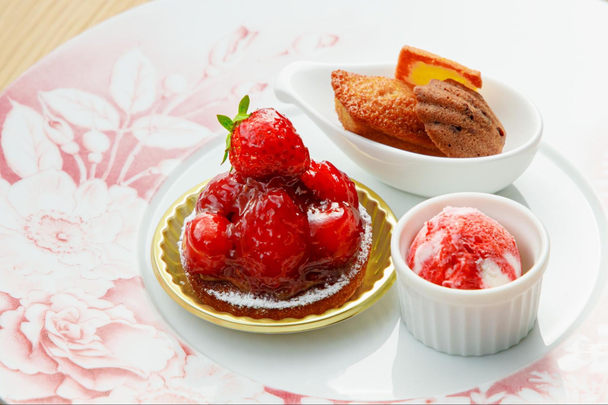 มาต่อกันที่เมนูของหวานที่ใส่ใจเลือกวัตถุดิบเฉพาะในท้องถิ่นซึ่งมี 2 รูปแบบ แบบแรกคือเซ็ตขนมหวานตามฤดูกาล ที่ลูกค้าสามารถเลือกเค้กได้หลายรูปแบบ และเพลิดเพลินไปกับเบเกอรี่และไอศกรีมหลากรสชาติ โดยเซ็ตนี้มีราคาอยู่ที่ 2,750 เยน เสิร์ฟในช่วงเวลา 11:30-21:00 น.