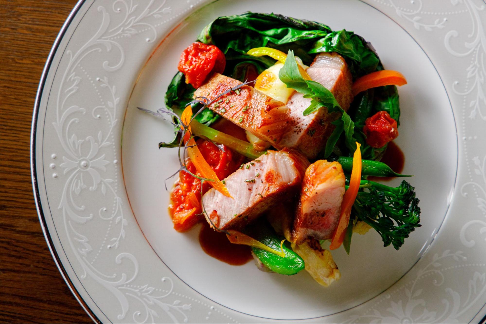 เริ่มกันที่เมนูประจำร้านซึ่งจะเสิร์ฟในช่วงมื้อกลางวันและมื้อเย็น ประกอบไปด้วยจานเรียกน้ำย่อย ที่นำผักตามฤดูกาลกว่า 20 ชนิดมาจัดเป็นอาหารสุดหรู อีกทั้งอุดมไปคุณประโยชน์อย่างเมนูสลัดต่างๆ และตามด้วยอาหารจานหลักสุดอลังการ หมูย่างสมุนไพรและแฮมเบิร์กร้อนๆ สูตรลับของทางร้าน ซึ่งเนื้อสัตว์ที่นำมาใช้ก็คัดสรรมาอย่างพิเศษเพื่อความอร่อยกลมกล่อมมากยิ่งขึ้น