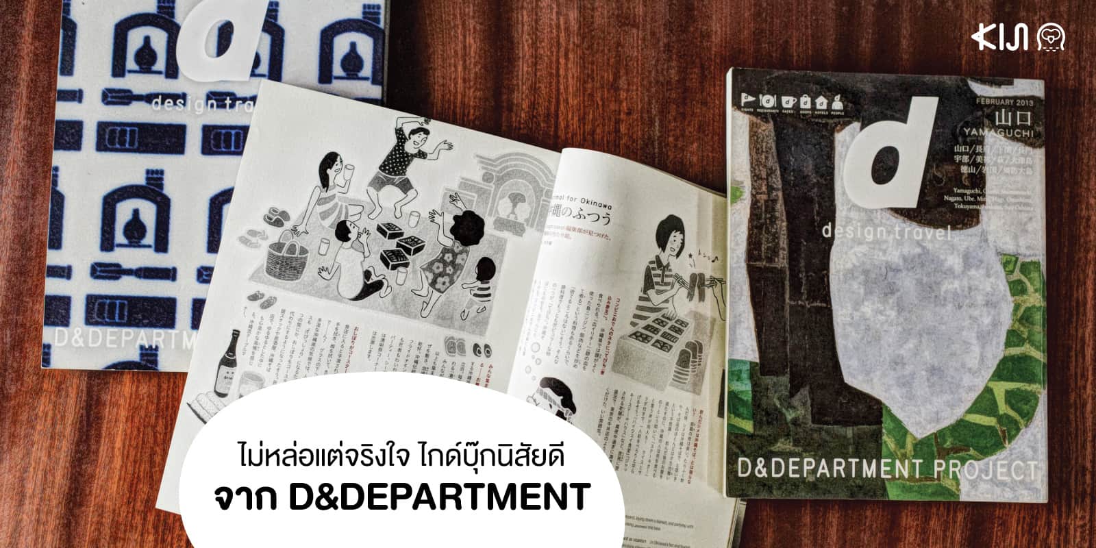 ตอนเข้าร้าน Muji ในญี่ปุ่นครั้งแรกที่สาขา Yurakucho ใกล้กับกินซ่า มุมที่ฉันจมหายไปนานมากๆ ก็คือมุมขายหนังสือ ที่นั่นฉันได้เจอหนังสือชุดหนึ่งชื่อ d design travel หน้าปกจะมีตัวอักษร d ตัวใหญ่ๆ กับภาพพื้นหลังที่เปลี่ยนไปในแต่ละเล่ม ด้านล่างมีชื่อ D&DEPARTMENT มุมขวาบนของหนังสือมีชื่อจังหวัดในประเทศญี่ปุ่นกำกับไว้ เล่มละจังหวัด จะว่าไปหน้าตาของหนังสือชุดนี้ไม่ถึงกับสวยโดดเด่น แต่เมื่อวางเรียงอยู่เป็นกลุ่มก้อนกลับมีพลังดึงดูดชวนให้เปิดดู ขณะนั้นหนังสือชุดนี้เพิ่งออกมาได้ถึงเล่มที่ 12 จากทั้งหมด 47 เล่ม เท่ากับจำนวนจังหวัดในญี่ปุ่น แล้วฉันก็ตัดสินใจซื้อมา 3 เล่ม ว่าด้วยจังหวัดยามากุจิ โอกินาว่า และซากะ