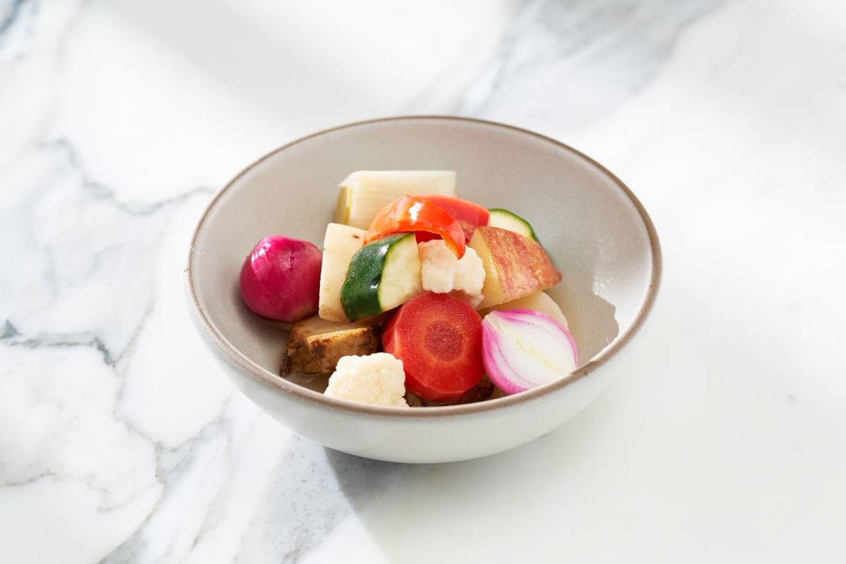 ในส่วนของรายการอาหารก็มีให้เลือกมากมาย เราอยากแนะนำให้ลอง DEK Original Pickles (600 เยน) เป็นผักดองสไตล์ญี่ปุ่นดั้งเดิมซึ่งทำจากผักและผลไม้ตามฤดูกาล ทุกครั้งที่ลิ้นสัมผัสจะได้รับทั้งความกรุบกรอบและรสชาติที่ละมุนลงตัว จะสั่งมารับประทานคู่กับเมนูอื่นๆ หรือจะจะสั่งมากินเล่นก็ได้ ทั้งชามบอกได้เลยว่าเฮทตี้สุดๆ