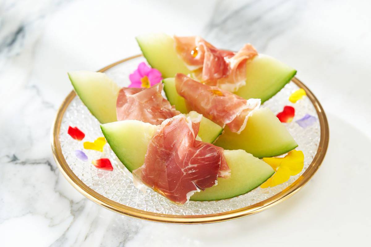 ถัดมาแม้จะชวนให้รู้สึกประหลาดใจเล็กน้อย แต่รสชาติของน้ำเมล่อนชิซูโอกะรสหวานกับความเค็มอ่อนๆ จากพาร์มาแฮมกลับลงตัวอย่างไม่น่าเชื่อ ทันทีที่นำเข้าปากก็จะเพลิดเพลินไปกับกลิ่นหอมเข้มข้นที่โชยมากระทบพร้อมสัมผัสจากน้ำผลไม้ชุ่มฉ่ำ เป็นความสมดุลที่สมบูรณ์แบบระหว่างความหวานของเมลอนและรสเค็มจากพาร์มาแฮม โดยราคาจานนี้อยู่ที่ 1,800 เยน