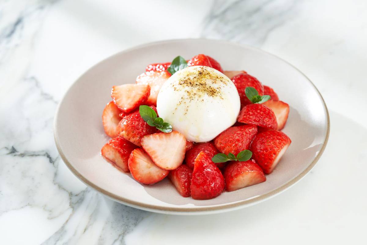ปิดท้ายด้วยของหวานที่สตรอเบอร์รี่เลิฟเว่อร์จะต้องตกหลุมรักกับ Strawberry Tochiaika and Burrata Cheese (1,800 เยน) ทางร้านใช้สตรอเบอร์รี่โทจิไอกะที่มีรสหวานเข้มข้น อมเปรี้ยวเล็กน้อย มาผ่าครึ่งคล้ายรูปหัวใจน่ารักๆ เสิร์ฟพร้อมชีสบูราต้าเบิร์นไฟที่วางท็อปอยู่ด้านบน ตกแต่งสวยๆ ด้วยใบมินต์ทำให้เมนูนี้ยิ่งดูน่ากินยิ่งขึ้น