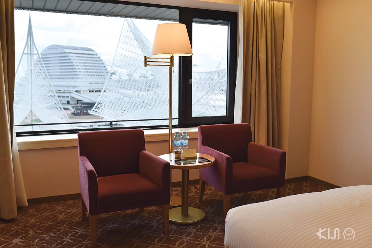 ห้องพักมีให้เลือกหลายประเภทและระดับราคา ซึ่งจะมีธีมแตกต่างกันไปในแต่ละชั้น ได้แก่ สไตล์ญี่ปุ่น, ตะวันตก และผสมผสาน แต่ก็มีความเรียบง่ายและงดงามเป็นเอกลักษณ์ และที่เก๋ไก๋สุดๆ คือทุกห้องจะสามารถมองเห็นวิวเมืองโกเบได้รอบทิศทาง (ขึ้นอยู่กับว่าที่ตั้งของห้องพักอยู่ด้านไหน) เช่น ฝั่งตะวันตก มองจากหน้าต่างจะเห็นเป็นวิว Kobe Port Tower หอคอยสีแดงสด สัญลักษณ์ของท่าเรือโกเบ หรือหากได้ห้องพักฝั่งเหนือ ก็จะได้เพลิดเพลินกับแสงไฟยามค่ำคืนของเมืองโกเบ ส่วนตัวเราได้วิวฝั่งตะวันออก บอกเลยว่ากรี๊ดมาก เพราะเป็นฝั่งที่หากตื่นเช้าก็จะได้ดื่มด่ำกับพระอาทิตย์ขึ้นตรงเส้นปลายขอบอ่าวโกเบ