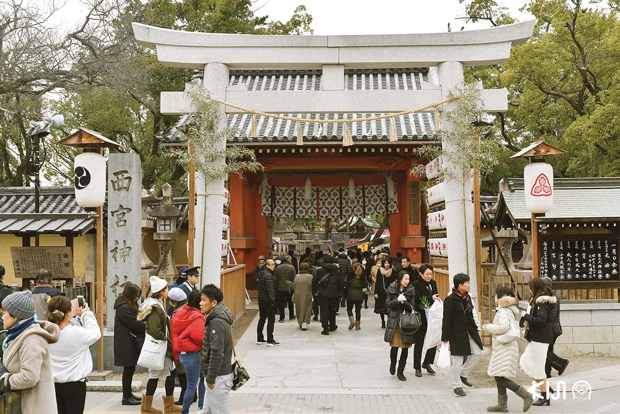 ใช่แล้ว เรากำลังจะชวนคุณไปสักการะเทพเจ้าเอบิสึ (Ebisu God) เทพแห่งการค้า โชคลาภ และความสุขสมบูรณ์ เรานั่งรถไฟ Hanshin ไปลงที่ Nishinomiya Station เดินต่ออีกแค่ราวๆ 5 นาทีก็ถึง Nishinomiya Shrine จุดหมายของเราแล้ว ใครที่นับถือเทพเอบิสึน่าจะรู้กันดีว่านี่เป็นศาลเจ้าที่สำคัญที่สุดในญี่ปุ่น วันปกติที่นี่อาจเป็นเพียงศาลเจ้าธรรมดา แต่ในวันที่ 9 ถึง 11 มกราคมของทุกปีจะมีการจัดงานเฉลิมฉลองครั้งยิ่งใหญ่ ว่ากันว่ามีผู้คนที่ศรัทธาหลั่งไหลมาสักการะกว่า 1 ล้านคน และมียะไต (ซุ้มขายอาหาร) มากกว่า 800 ร้าน ความธรรมดาเป็นพิเศษแบบนี้หนึ่งปีมีเพียงครั้งเดียวเท่านั้นนะ