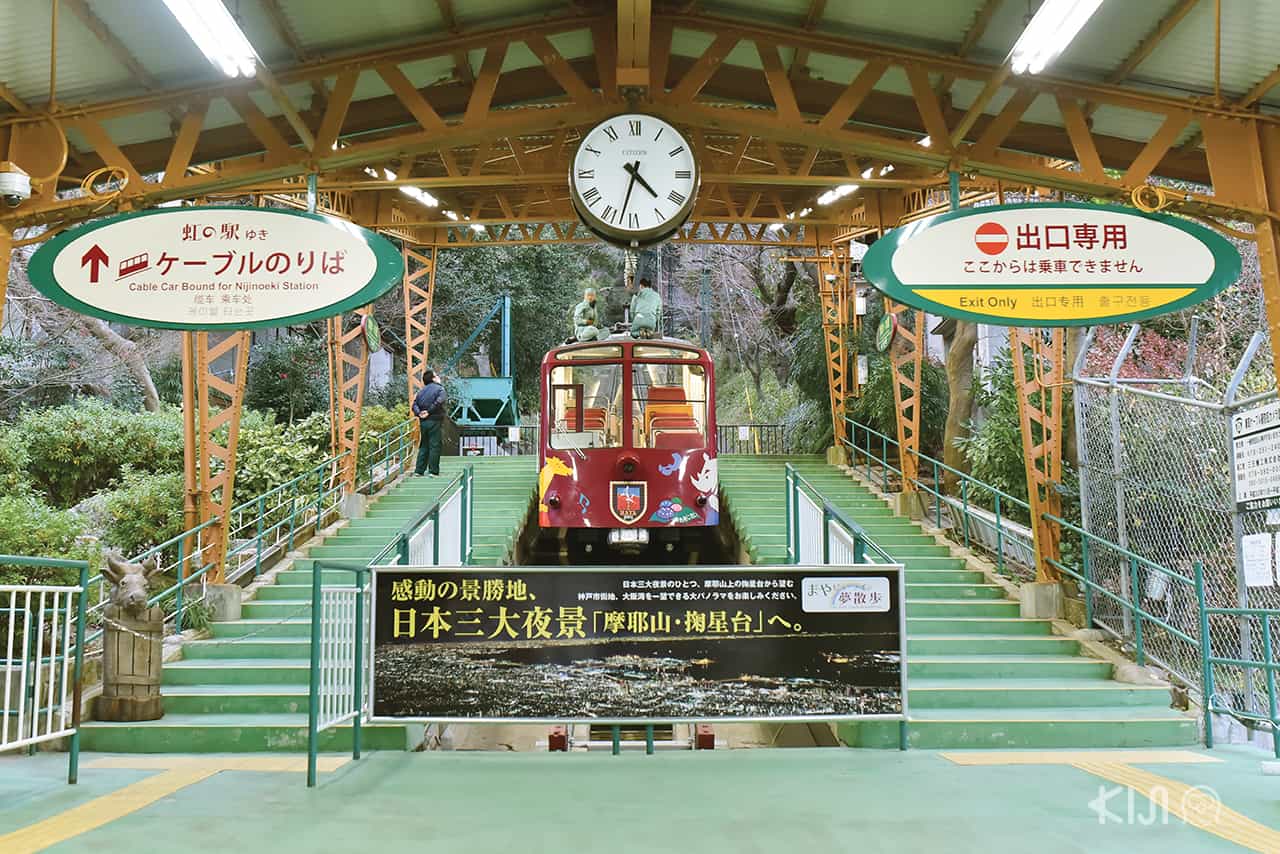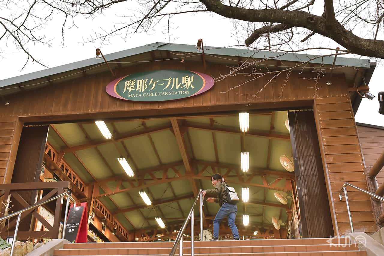 โกเบเที่ยวได้ทั้งวันทั้งคืนจริงๆ เที่ยวตอนฟ้าสว่างจนหมดแล้ว ก่อนฟ้าใกล้มืดเราตั้งใจจะไปดูพระอาทิตย์ตกบนภูเขามายะ (Mount Maya) ตรงพื้นที่ที่เรียกว่า “Kikuseidai” เนื่องจากจุดชมวิวตั้งอยู่บนภูเขาและตั้งอยู่ห่างไกลสถานีรถไฟ การเดินทางจึงอาจดูยุ่งยากไปสักหน่อย เพราะต้องมาต่อรถบัสเพื่อไปขึ้นกระเช้าลอยฟ้าที่สถานี Maya Cable Station แต่ก็ไม่ได้ยากลำบากเกินความอยากจะชมวิวของเราหรอก