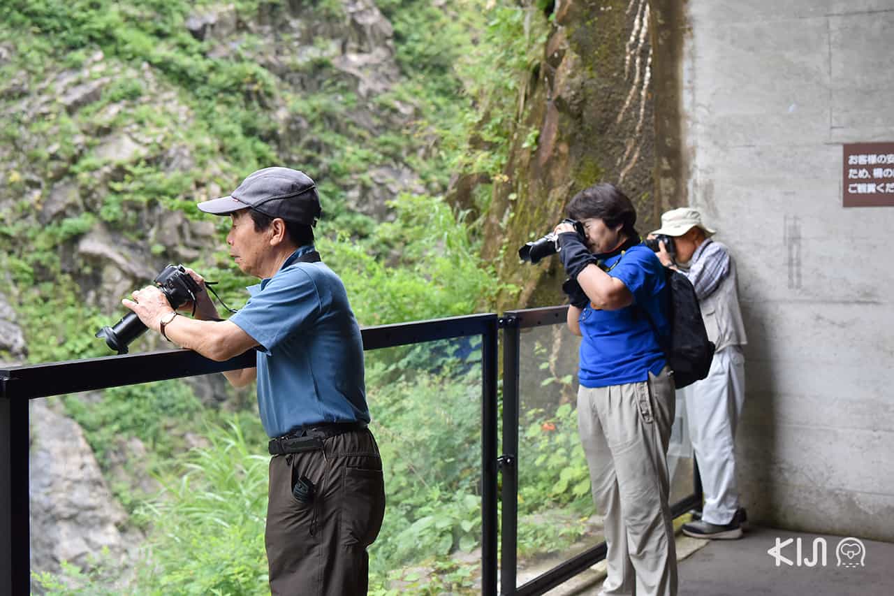 แพลตฟอร์ม 1 อุโมงค์ปูนเปลือยที่เห็นวิวด้านข้างของหุบเขาและแม่น้ำคิโยสึ (Kiyatsu River) ไหลผ่านเบื้องล่าง วิวส่วนใหญ่ที่เราเห็นจะเป็นสีเขียวของต้นไม้ เติมความสดชื่นให้กับบรรยากาศหน้าร้อนได้ดี เราประทับใจกับกลุ่มคุณลุงคุณป้าชาวญี่ปุ่นที่มาออกทริปฝึกถ่ายรูปธรรมชาติกัน เป็นกิจกรรมน่ารักที่เห็นแล้วชวนให้ยิ้มตาม