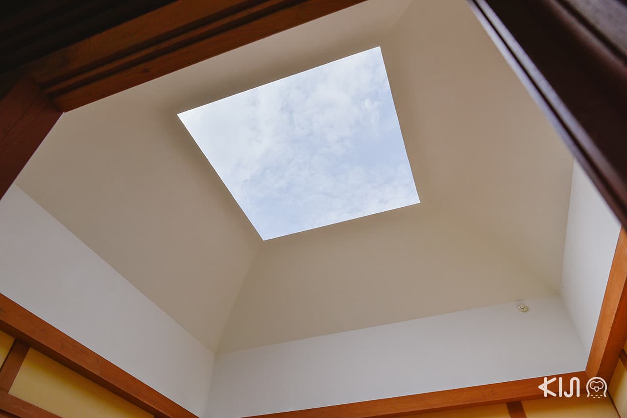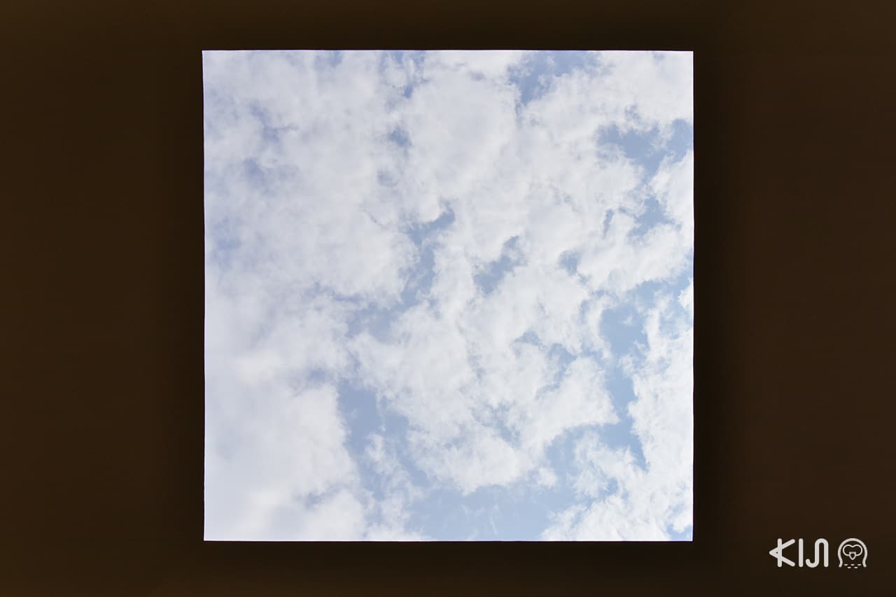 นอนมองผ่านช่องเพดานสี่เหลี่ยม เหมือนเอาท้องฟ้ามาอยู่ในกรอบรูปเลย