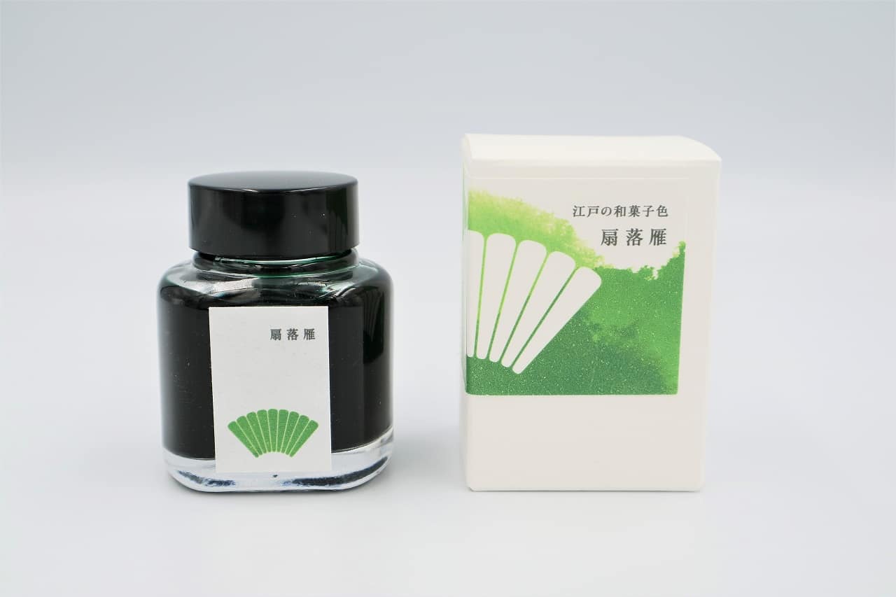 สีเขียวและสีส้ม ได้แรงบันดาลใจจากขนม Rakugan (落雁) ขนมหวานญี่ปุ่นโบราณแบบแห้ง ทำจากแป้งผสมน้ำตาลชนิดพิเศษของญี่ปุ่น นิยมกินคู่กับมัทฉะ มีหลายสีแต่สีที่ถูกเลือกมาใช้ในน้ำหมึกคอลเลคชั่นนี้คือ Ogi Rakugan (เขียว)