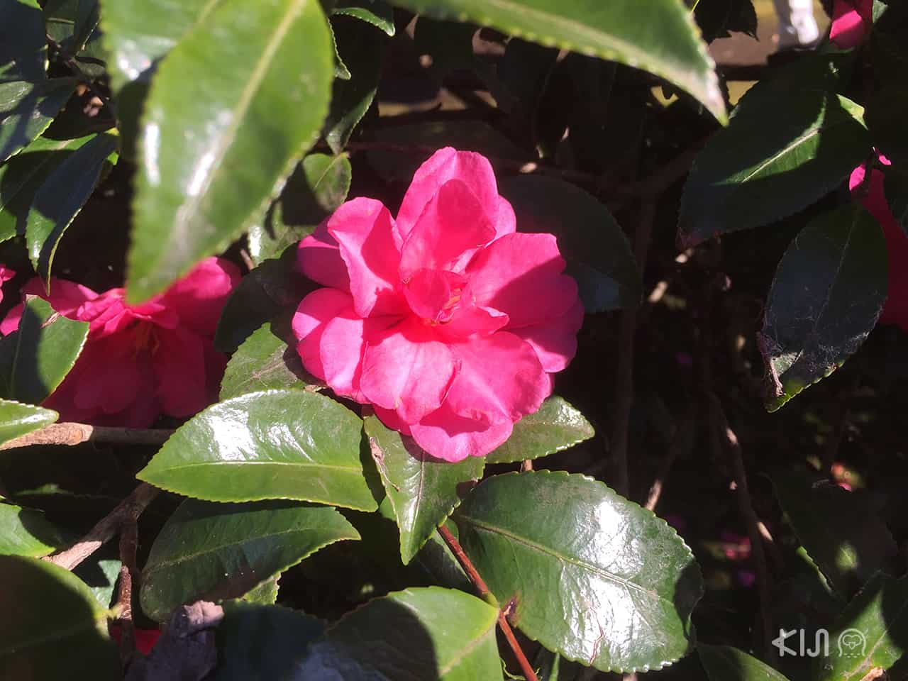 ดอกสึบากิ (Tsubaki) ที่บานในฤดูใบไม้ร่วงบนเกาะเอโนชิมะ