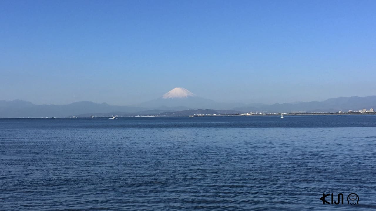 ภูเขาไฟฟูจิที่มองเห็นจากสะพานข้ามเกาะ