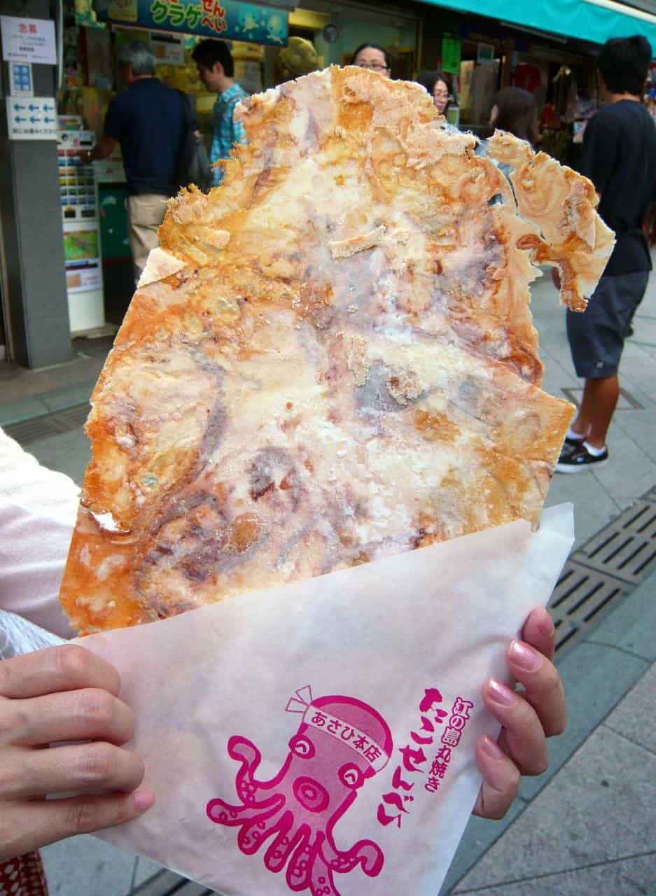 นอกจากการรับประทานอาหารแบบเป็นกิจลักษณะแล้ว หากใครไม่ค่อยมีเวลา หรือรู้สึกว่าไม่จำเป็นที่จะต้องพักเหนื่อย เราแนะนำให้เดินตามทางไปเรื่อยๆ เพราะระหว่างทางจะเห็นเพิงขายของกินเล่นหลายอย่าง ไม่ว่าจะเป็นโคโรเกะสอดไส้ปลานามะชิราสึ (Namashirasu) ขนมเซมเบ้ที่สอดไส้ปลาหมึกยักษ์ทั้งตัว (Maruyaki Tako Sembei) ฯลฯ ถ้ายังเลือกไม่ได้ว่าจะนั่งหรือเดินกิน ก็แนะนำให้ทำทั้งสองอย่าง จะได้ไม่มานั่งเสียดายภายหลังว่าเห็นโน่นนี่น่ากิน แต่สุดท้ายก็ไม่ได้ซื้อ