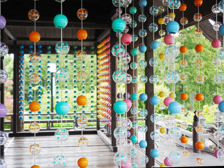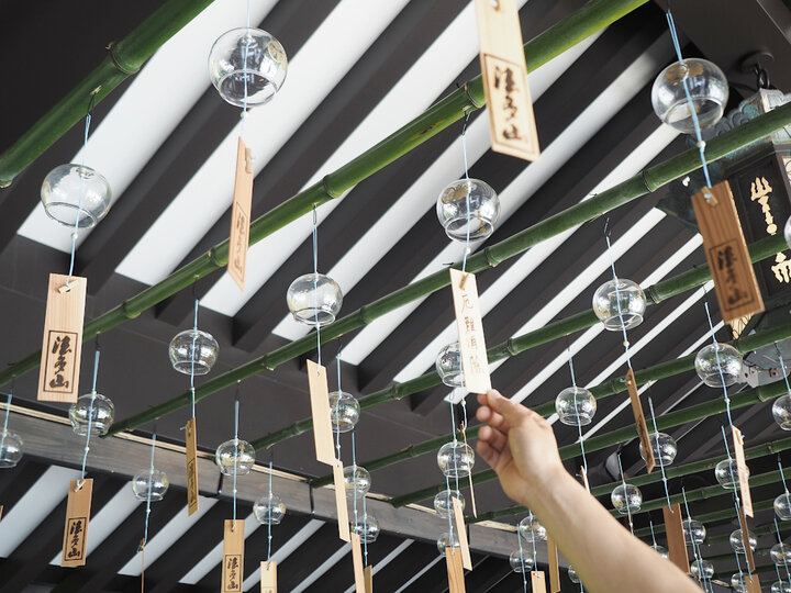 ที่นี่เค้ามีกระดิ่งลมสีสันสดใสให้เราขอพรได้ด้วย นอกจากนี้เพียงจ่ายแค่ 700 เยน เราก็จะสามารถเข้าชมไฮไลท์กระดิ่งลมที่ทางวัดจัดขึ้นได้ โดยทางวัดได้มีการนำกระดิ่งลมประมาณ 1,000 อัน มาร้อยและห้อยเป็นรูปทรงภูเขาไฟฟูจิ ประดับเอาไว้ในสวนญี่ปุ่นให้เราได้ชื่นชม หากสังเกตดีๆ จะเห็นได้ว่าด้านบนสุดมีการใช้กระดิ่งลมสีขาวด้วย เปรียบเสมือนหิมะปุกปุยที่ปกคลุมยอดภูเขาไฟฟูจิอยู่นั่นเอง