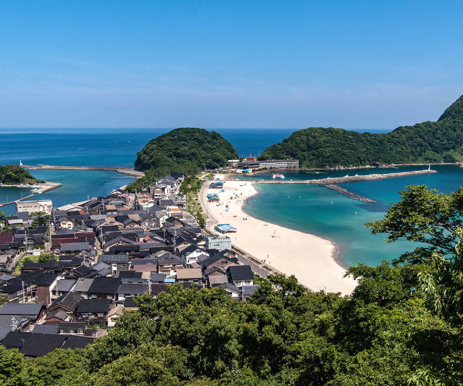 หมู่บ้านชาวประมงบริเวณเหนือสุดของจังหวัดเฮียวโงะติดกับชายฝั่งทะเลญี่ปุ่น หาดทรายสีขาวผืนใหญ่ น้ำทะเลสีฟ้า และภูเขาที่เรียงตัวเป็นแนวยาว นับว่าเป็นอีกจุดหนึ่งที่ไม่ว่าใครที่แวะเวียนมาที่เมืองโทโยโอกะแล้วก็จะต้องหาเวลาสักครึ่งวันมาพักผ่อนที่นี่