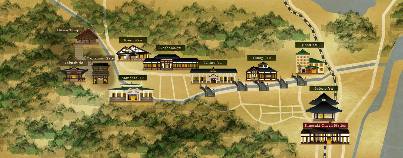 หมู่บ้านออนเซ็นเก่าแก่ที่มีบรรยากาศของเมืองญี่ปุ่นใน 1,300 ปีก่อน มีบ่อน้ำพุร้อนทั้งหมด 7 แห่ง ซึ่งทั้งหมดสามารถเดินไปใช้บริการได้สะดวกจากสถานีรถไฟคิโนะซากิออนเซ็น (Kinosaki Onsen Station) และยังสามารถเช่าชุดยูกาตะ ใส่เกี๊ยะเดินช็อปปิ้ง ถ่ายรูปกับฉากเมืองและธรรมชาติสวยๆ ได้อย่างจุใจ นอกจากนี้ เรียวกัง หรือ โรงแรมสไตล์ญี่ปุ่นของที่นี่ก็ล้วนแต่บรรยากาศดีจนน่าพักสักคืนสองคืน