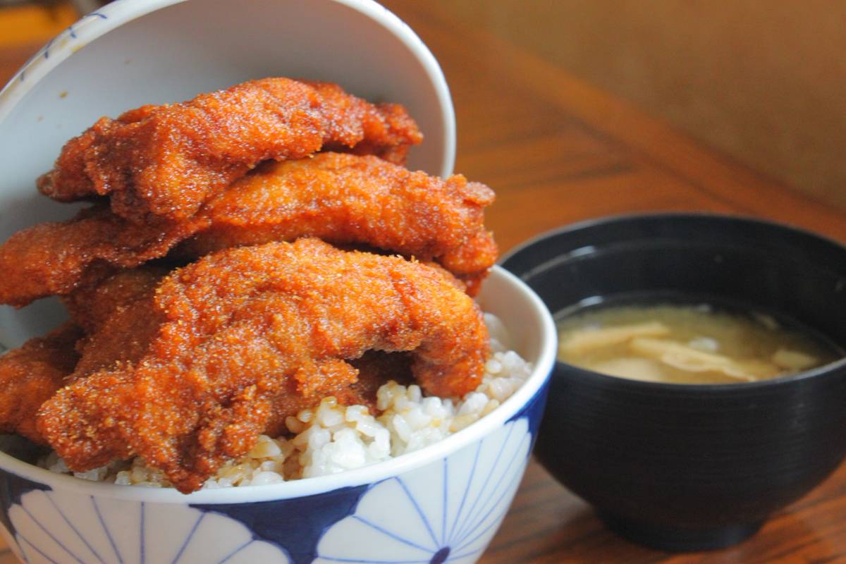 ซอสคัตสึด้ง หรือ ข้าวหน้าหมูทอดราดซอส เป็นเมนูดงบุริจานร้อนชื่อดังของ ฟุกุอิ ที่ยกให้เป็น อาหาร แห่งจิตวิญญาณ (โซลฟู้ด) ของชาวฟุกุอิ นิยมหั่นเนื้อหมูเป็นชิ้นบางๆ แล้วนำไปชุบเกล็ดขนมปังทอด ราดด้วยซอสเข้มข้น วางพูนๆ เต็มชาม ผู้ที่คิดค้นเมนูนี้ขึ้นคือคุณทาคาฮาตะ มาสึทาโร่ (Masutaro Takahata) ผู้ก่อตั้งร้าน Yoroppaken Sohonten ในตัวเมืองฟุกุอิซึ่งเขาเคยไปเรียนการทำอาหารตะวันตกที่ประเทศเยอรมันมาก่อน แม้ว่ามีหลายจังหวัดที่อ้างว่าซอสคัตสึด้งเป็นอาหารท้องถิ่นของตน แต่หากพิจารณาจากจำนวนร้านข้าวหน้าหมูทอด จะพบว่าที่ฟุกุอิมีเยอะมากจนเห็นได้ชัด